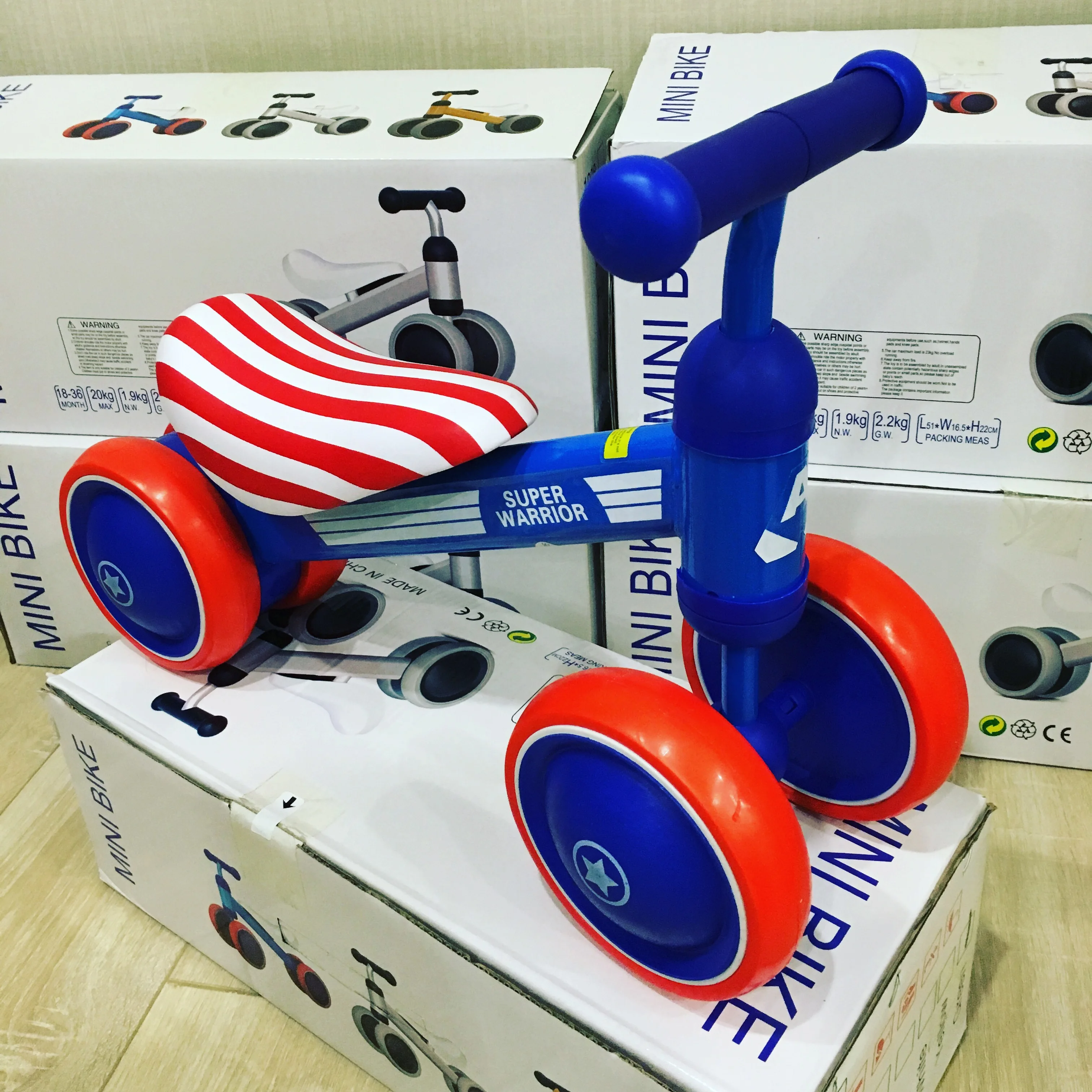 Беговел минибайк подходит для самых маленьких,его вес всего 1,9 кг., колеса EVA. Выдержит нагрузку до 20 кг. Рекомендуемый рост ребенка до 86 см.