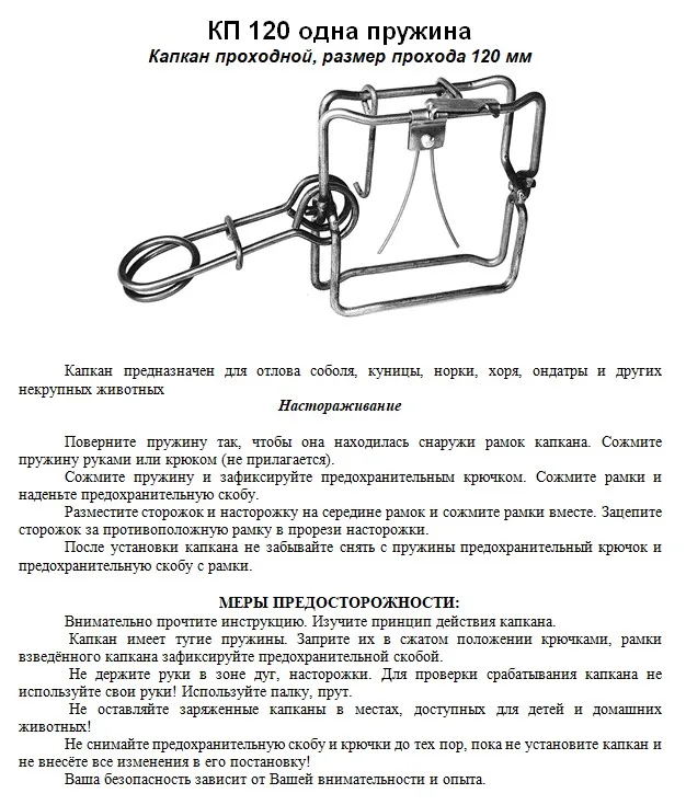 Отзывы о Капкан - ловушка КП 120 одна пружина (0104) Разрешен для помысла в РФ | Спорт и