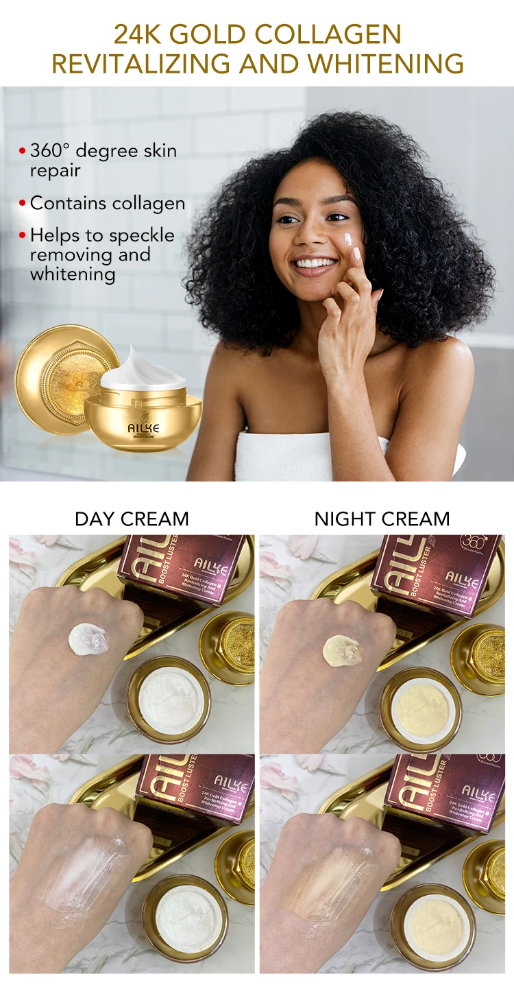 AILKE 24k Gold Восстанавливающий отбеливающий коллагеновый дневной и ночной крем