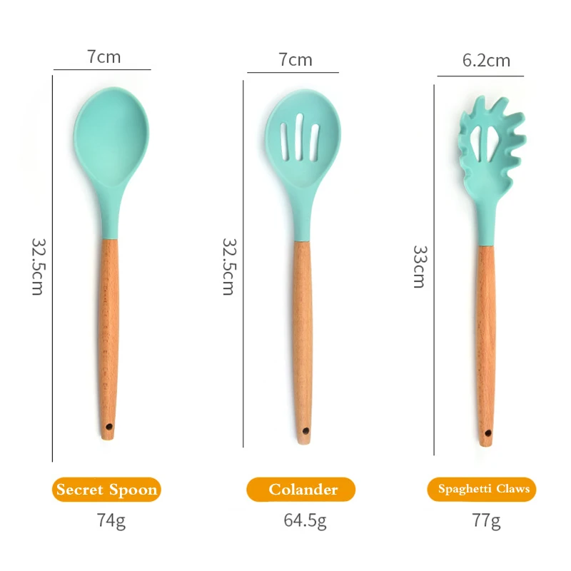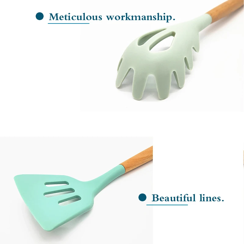 Отзывы о Набор термостойких кухонных принадлежностей из силикона ручки бука 9/12 шт. -