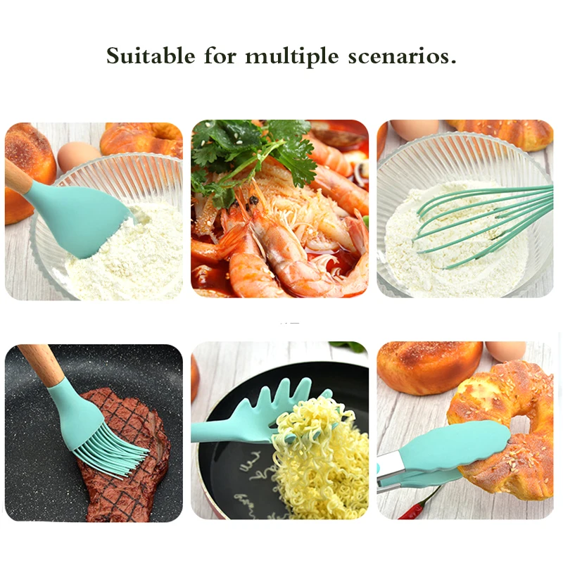 Набор силиконовой посуды-кухонный помощник, идеально подходит для всех видов продуктов и кухонных принадлежностей, жарки, перемешивания крема, масла, мороженого и т. д. Включает лопатку, щётку, остроконечную лопатку, круглое Тернер, ковш, прямую кромку Тернер, ложку, щипцы, паста вилку и идеально подходит для всех видов продуктов и приготовления пищи.