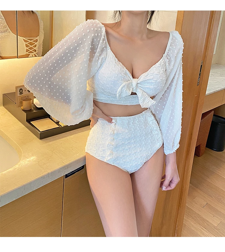 Отзывы о 2021 корейский пикантный бикини с высокой талией Женский однотонный купальник