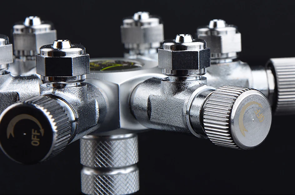 2. Каждый выход оснащен индивидуальным игольчатым клапаном, позволяющим точно регулировать поток CO2.