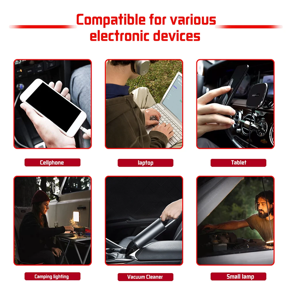 1 х Автомобильный инвертор 1 x набор зажимов для аккумулятора (черный и красный провод) 1 х разъем прикуривателя (подарок) 1 x Руководство пользователя