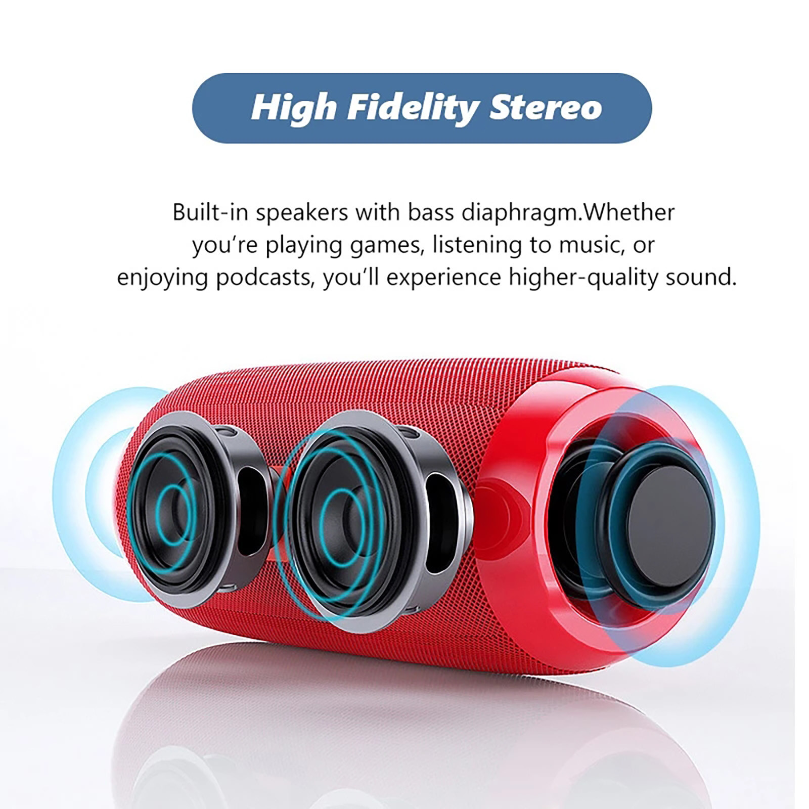 Цилиндрическая форма и встроенный левый и правый каналы обеспечивают стереозвук на 360 °.