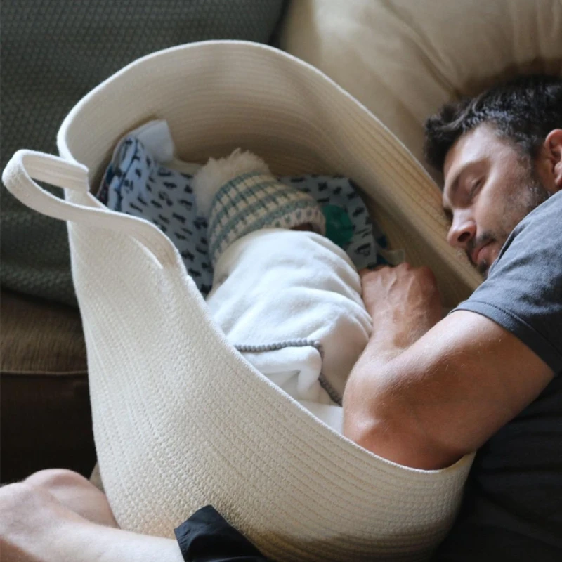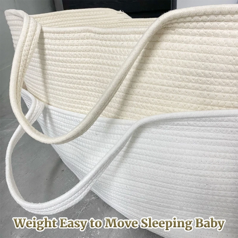 Особенности: Корзина «Моисей» изготовлена из натурального хлопкового тканого каната, безопасна для сна и детских принадлежностей, не содержит химикатов и запаха. Может быть легко перемещен из комнаты в комнату, так что ребенок может быть рядом с вами во время сна и идеально подходит для ежедневного сна или портативной кровати для путешествий. Может использоваться в качестве переносчика, кроватки, манеж, зоны кормления, станции для переодевания или безопасной, удобной кроватки для новорожденных; Дает ребенку привычное место для сна и игры. Только корзина «Моисей», другие демонстрационные аксессуары на картинке не включены Посылка: Корзина Моисея-1 шт.