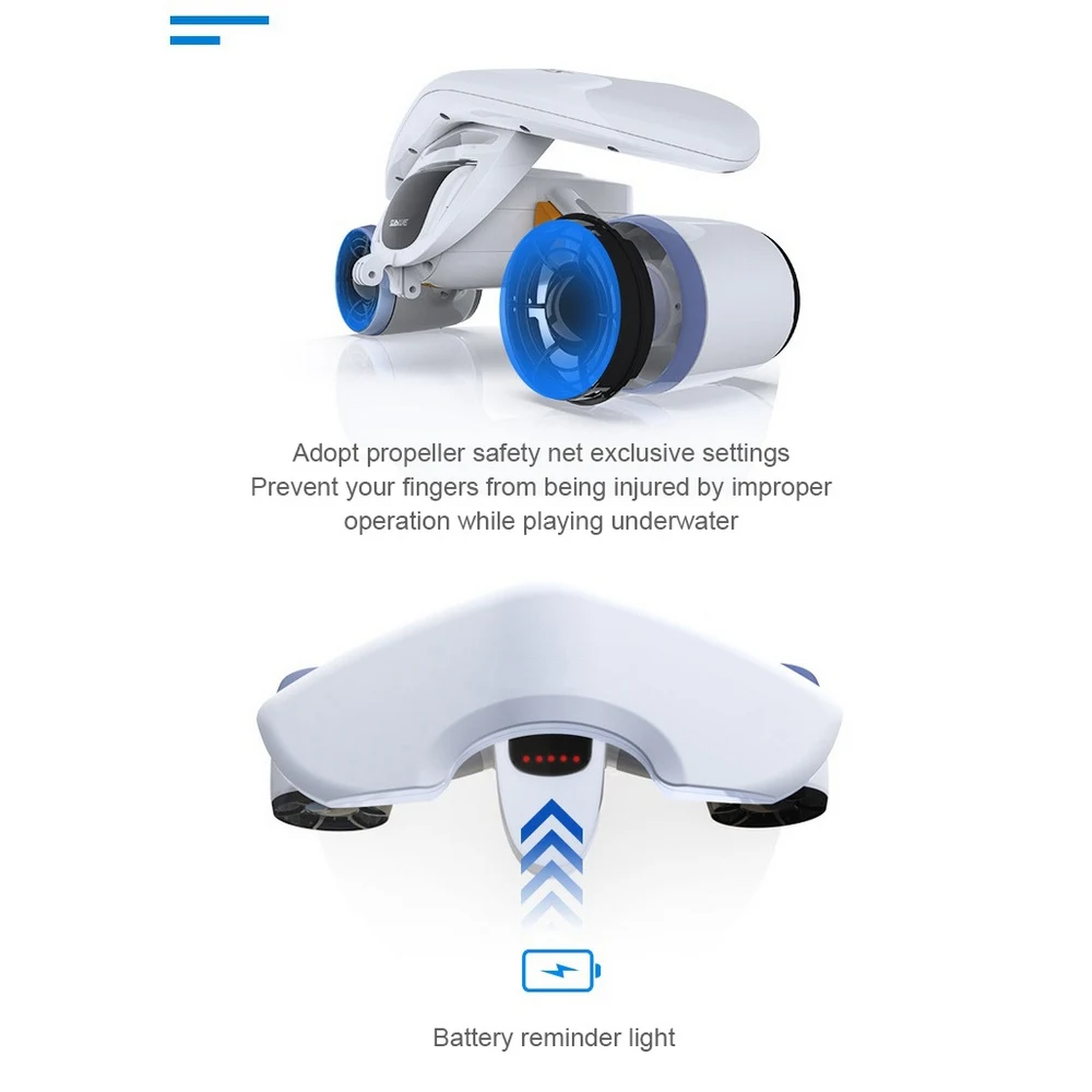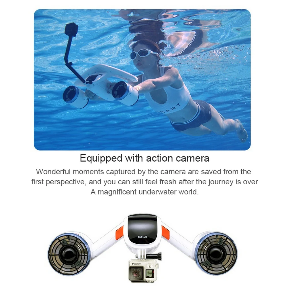 Оборудование для подводного бустера для подводного плавания и подводного плавания обеспечивает простую работу-магнитные переключатели на левую и правую ручках просты в использовании. Портативный размер, полный энергии. Общий вес которых составляет 6,4 фунтов, это легко носить с собой в своей стране, так и за рубежом. Два двигателя выпустили в общей сложности 8 кг тяги, чтобы исследовать подводный мир. С подвижным поплавком, он может реализовать положительную плавучесть или нейтральную плавучесть; Водонепроницаемая структура, с защитной крышкой, может предотвратить случайные повреждения пальцев. Работает от герметичной аккумуляторной батареи 11000hAm, она может работать до 30 минут при нормальном использовании.
