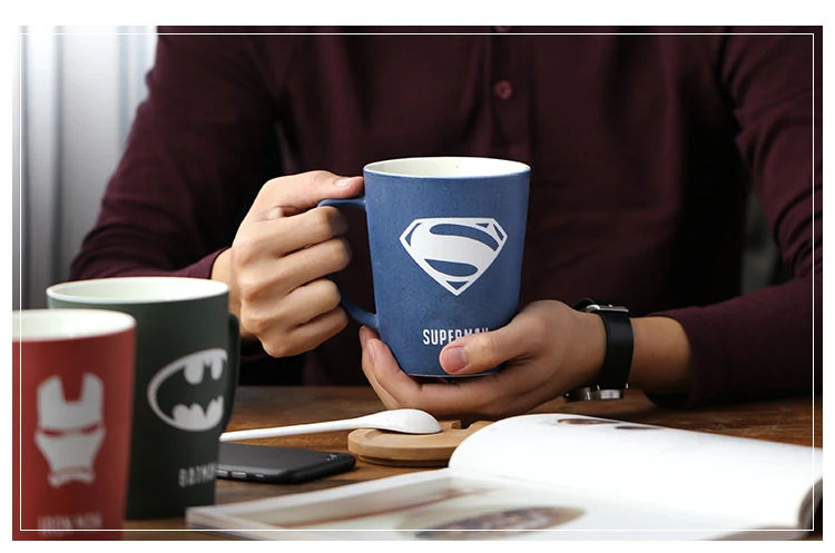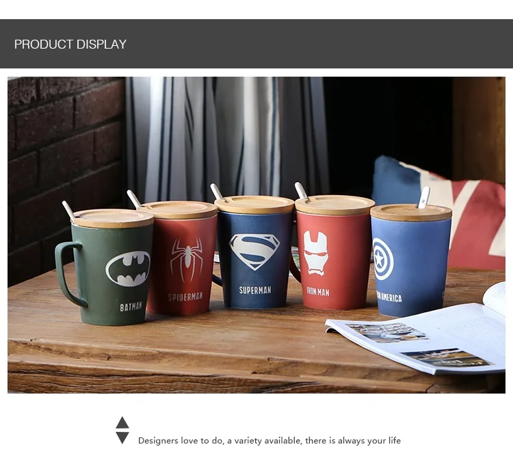 Кружки с супергероями Мстителями, материал-керамика и дерево. Противоскользящая ручка, может экономить горячую воду.