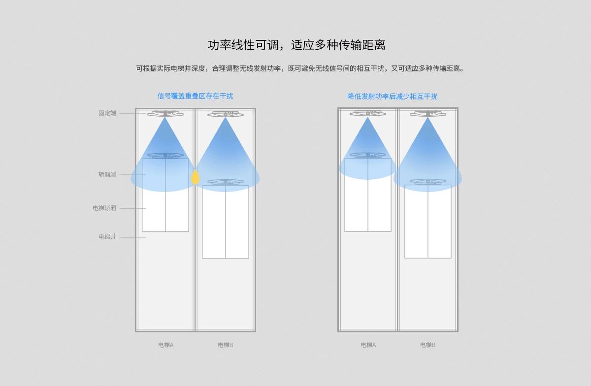 > Мощность беспроводной передачи линейно регулируется, отрегулируйте расстояние передачи в соответствии с потребностями и избегайте кочастотных помех