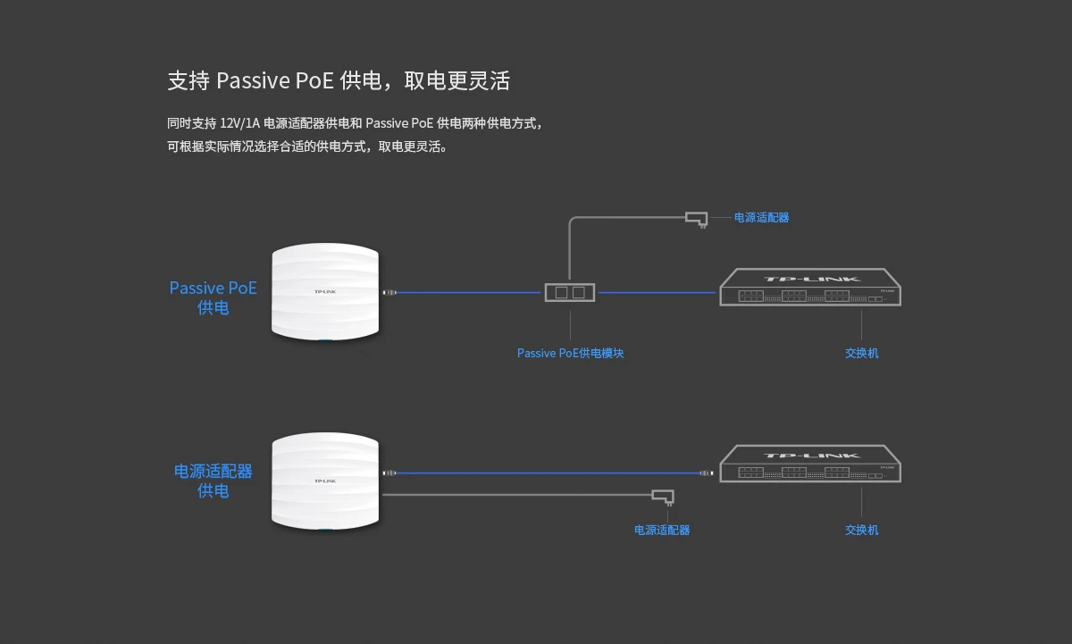 > Поддержка пассивного питания PoE и DC