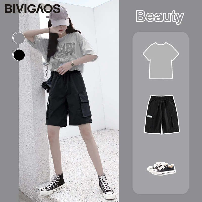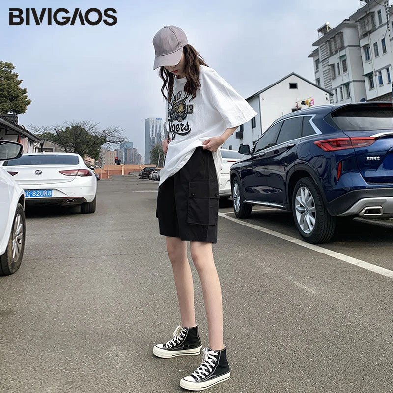 Отзывы о BIVIGAOS Шорты-карго женские с завышенной талией повседневные тонкие свободные