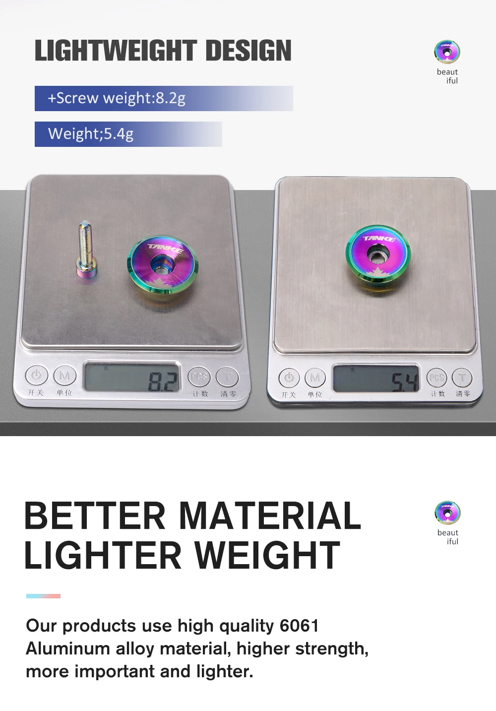 3. Высококачественный алюминиевый сплав Материал, высокая прочность, светильник вес, покрывают только 5,2 г, винт по операциям всего 2,8 г.