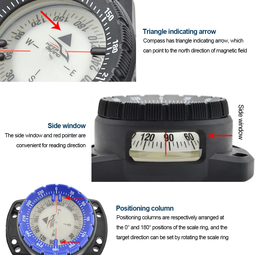 * 5. Водонепроницаемость: 50 метров, он является профессиональным Компас для дайвинга.