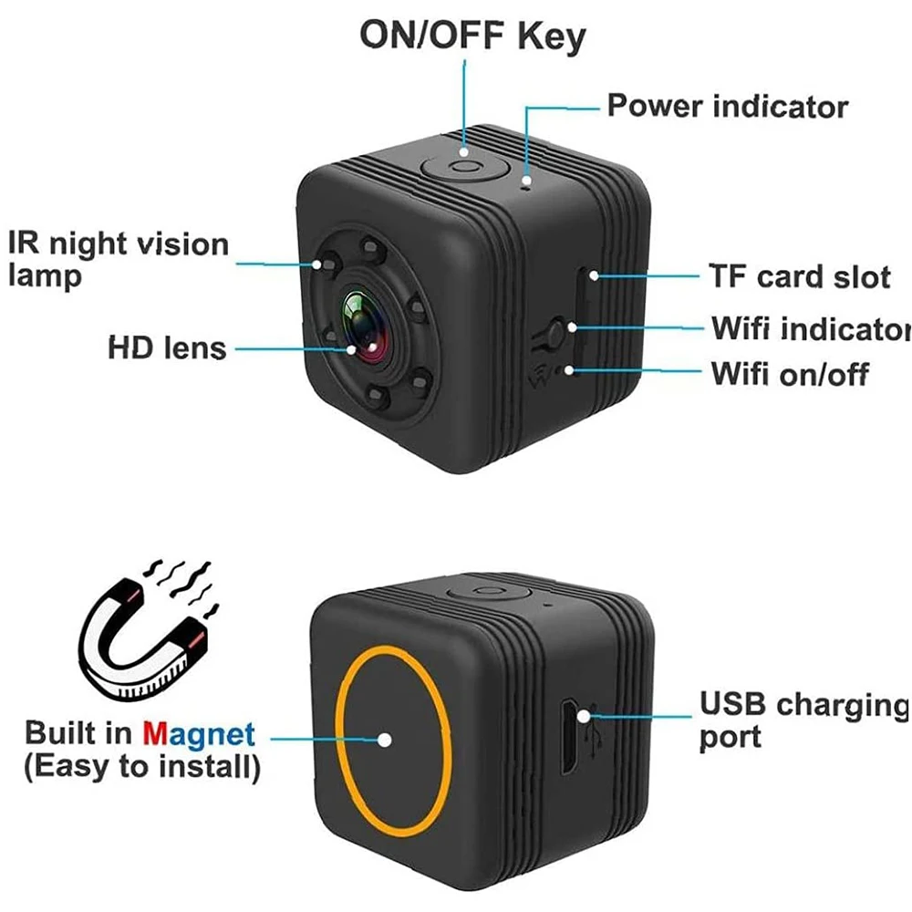 4. Инфракрасное Ночное Видение: 6 инфракрасных ламп, мощный эффект ночного видения. -Миниатюрный размер: небольшой форм-фактор, портативный Портативный DV DC, подходит для разных случаев.