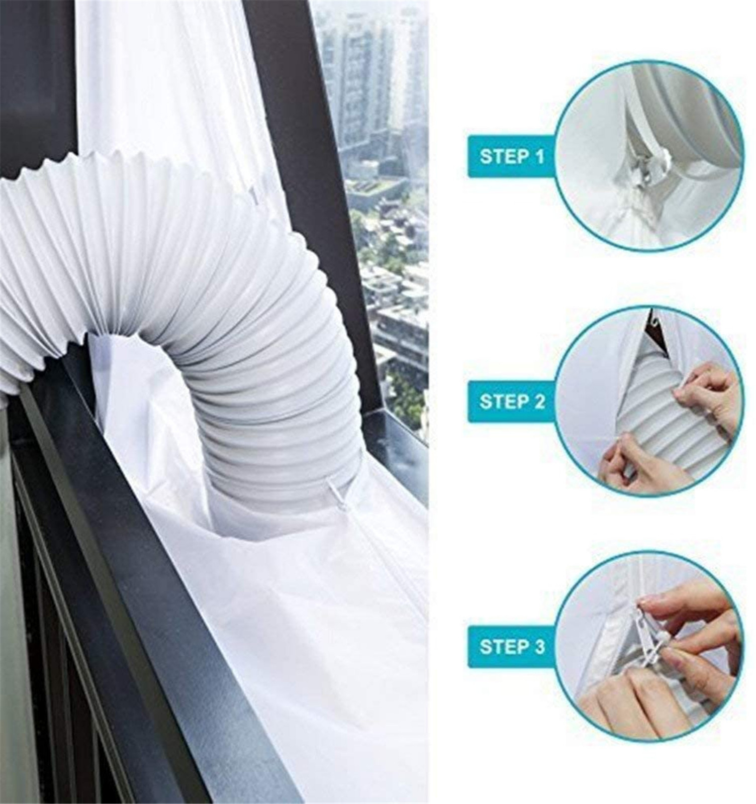 В Оконное уплотнение наклеивается вокруг открытого окна, чтобы зафиксировать вокруг шланга И блокирует обратный поток теплого воздуха. Вам не нужно сверлить отверстие на Окно для выхлопного шланга больше.