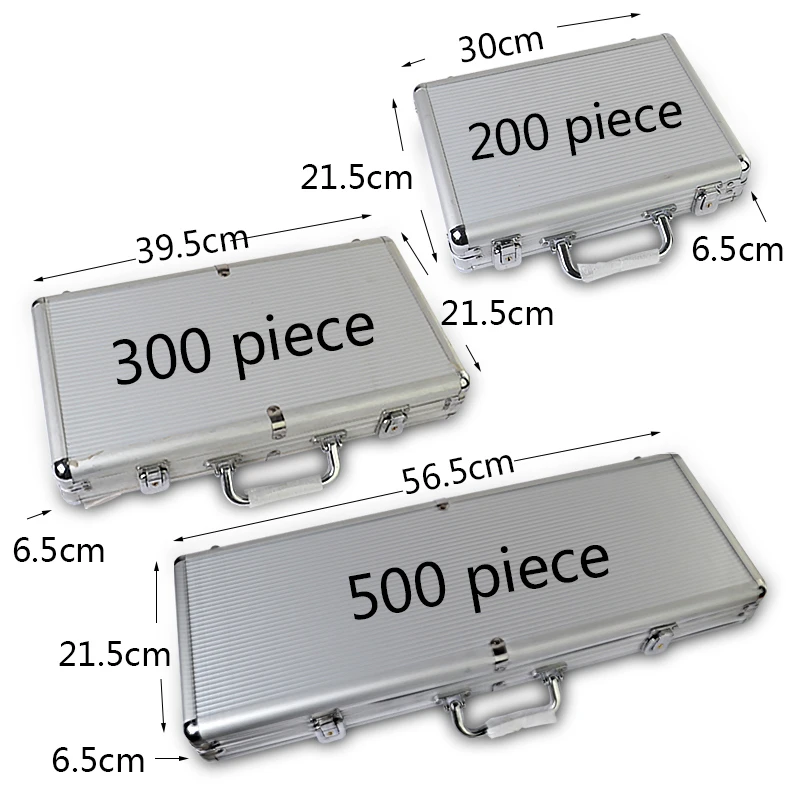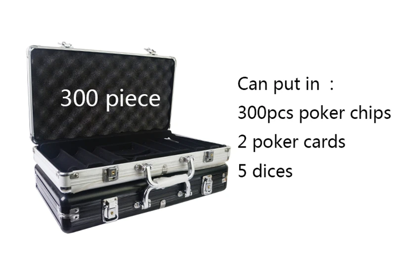 Особенности: 1. Это просто коробка без фишек и покера. 2. Размер: 100/200/300/400/500 чипов. 3. Материал: алюминий + пластик + МДФ (не 100% алюминий). 4. Цвет: черный/серебристый 5. С противоскользящим ковриком, высокое качество. 6. Оснащен двумя клавишами. Посылка: 1 * коробка (это просто чемодан без покерных фишек)
