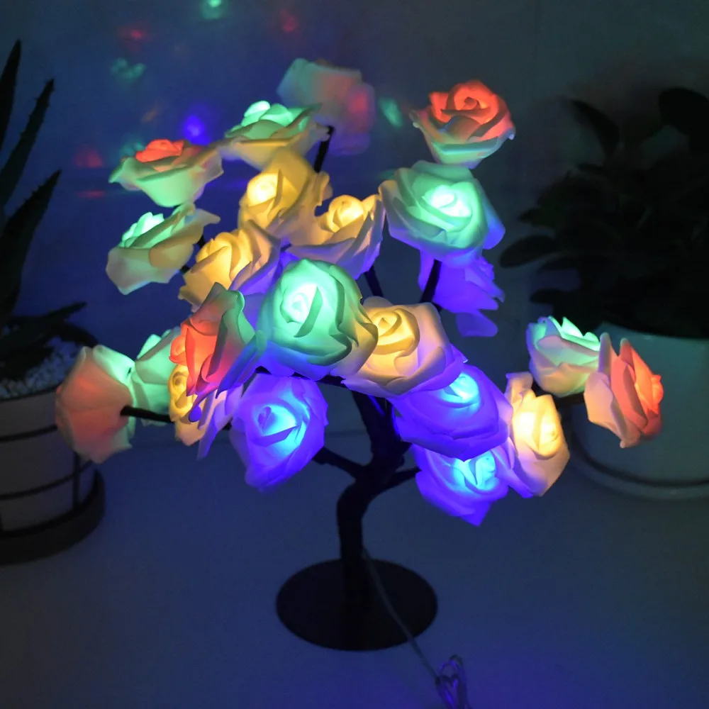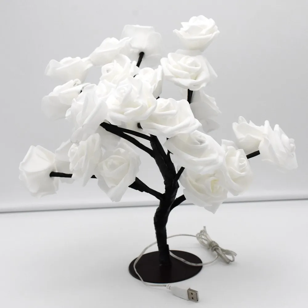 Светодиодная настольная лампа с розами и деревом, USB, ночные светильники для дома, украшения феи, для праздника, Рождества, свадьбы, вечеринки, украшения для детской спальни