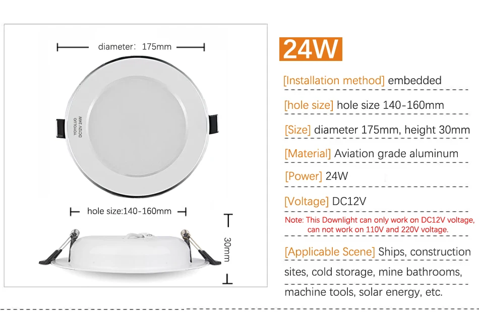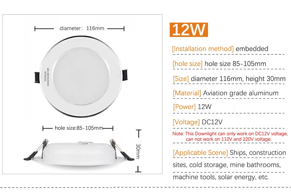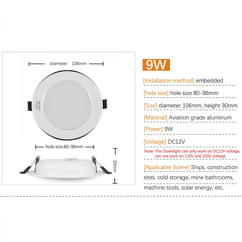 DC12V светодиодный точечные потолочные светильники водонепроницаемый IP65 потолочный светильник Встраиваемый 6 Вт 9 Вт 12 Вт 15 Вт безопасное напряжение для лодки для ванной комнатыПримечание: Этот светильникМожет работать только на напряжении DC12V, не может работать на напряжении 110 В и 220 В.Описание товара:Наименование товара:DC 12V светодиодный светильникМощность: 6 Вт 9 Вт 12 Вт 15 Вт 24 ВтВходное напряжение:DC12VМодель светодиодного чипа: SMD2835Индекс цветопередачи: Ra80Цветовая температура: холодный белый 6000-6500K, теплый белый 2700-3200KУважаемые покупатели, пожалуйста, обратите внимание:Потому что цена очень низкая, поэтому светодиодные лампы не поставляются с розничной коробкой, если вы хотите розничную коробку, пожалуйста, обратитесь к нам за помощью