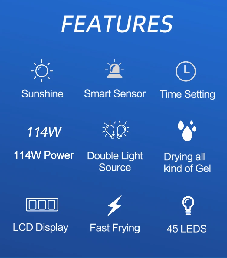★Двойной светильник и широкая совместимость. С длиной волны 365nm + 405nm. Он может высушить гель для ногтей, светодиодные гели и все виды геля.
