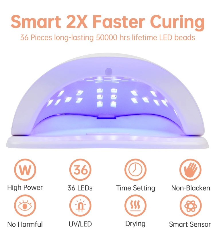 ★57 ламповых бусин, хорошо расположенных. Не мертвая зона отверждения почти всех гель-лаков. Экономьте 95% времени для отверждения ногтей.