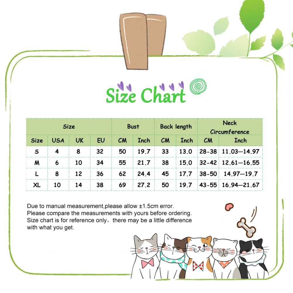 Информация о размерах: [Наш Размер S] Обхват груди: 50 см/19,7 дюйма, длина спины: 33 см/13 дюймов, обхват шеи: 28 см-38 см/11,02 "-14,96" (прибл.)