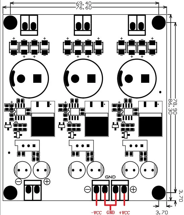 Цветовая классификация: A: Y5e одноканальный B: Y5a ± 12V 5V C: Y5b ± 15V 3,3 V D:Y5c ± 15V 5V E: Y5d ± 18V 5V F: Настройка других напряжений G: соответствующий 25 Вт трансформатор H: соответствующий трансформатор 50 Вт Модуль питания P2 DAC P2 использует операционную и полевую архитектуру труб. Op amp использует новый и оригинальный Ti NE5534 op amp. Полевая трубка использует новый и оригинальный Infineon IRF9Z34NS. Выходное напряжение стабильное и низкое пульсация, и скорость отклика быстрая. Он очень подходит для обеспечения мощности для платы DAC. В конструкции платы учитывается, что потребителям нужно 3 набора независимых источников питания, поэтому PD-01 можно использовать как 3 комплекта раздельного выходного напряжения. Более подходит для нашей платы декодера PCM1794A. Выходное напряжение: плюс или минус 12 В, + 5 В Выходной ток: макс. 2 А Трансформатор требования: она должна быть 4 выходного сигнала, то есть среднее является самостоятельным обмотки и резьбовые типа не может быть использован, в противном случае он будет гореть доски и трансформатора; другой трансформатор имеет только два набора обмотки. Если вы хотите подключить + 5 В, вы должны подключиться параллельно от входа положительного источника питания. Не вводите свинец из отрицательного источника питания, в противном случае плата и трансформатор будут сожжены; Схема открытия размера платы: