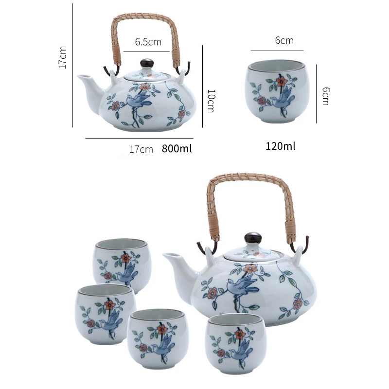 Отзывы о Белый керамический фарфоровый чайный набор цветочный и птичный дизайн 800 мл
