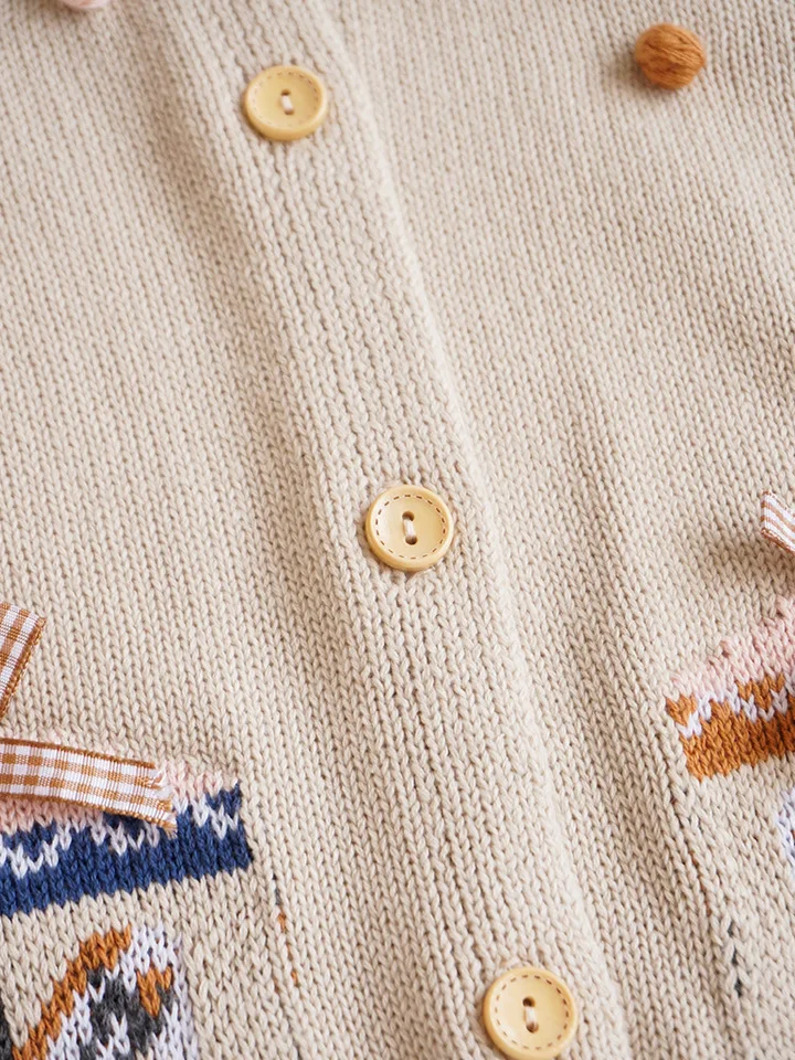 Кардиган для маленьких девочек; Сезон осень-зима; Коллекция 2021 года; Детский свитер для девочек; Шерстяная одежда с вышивкой и помпоном; Детский кардиган; Пальто; Свитера для малышей
