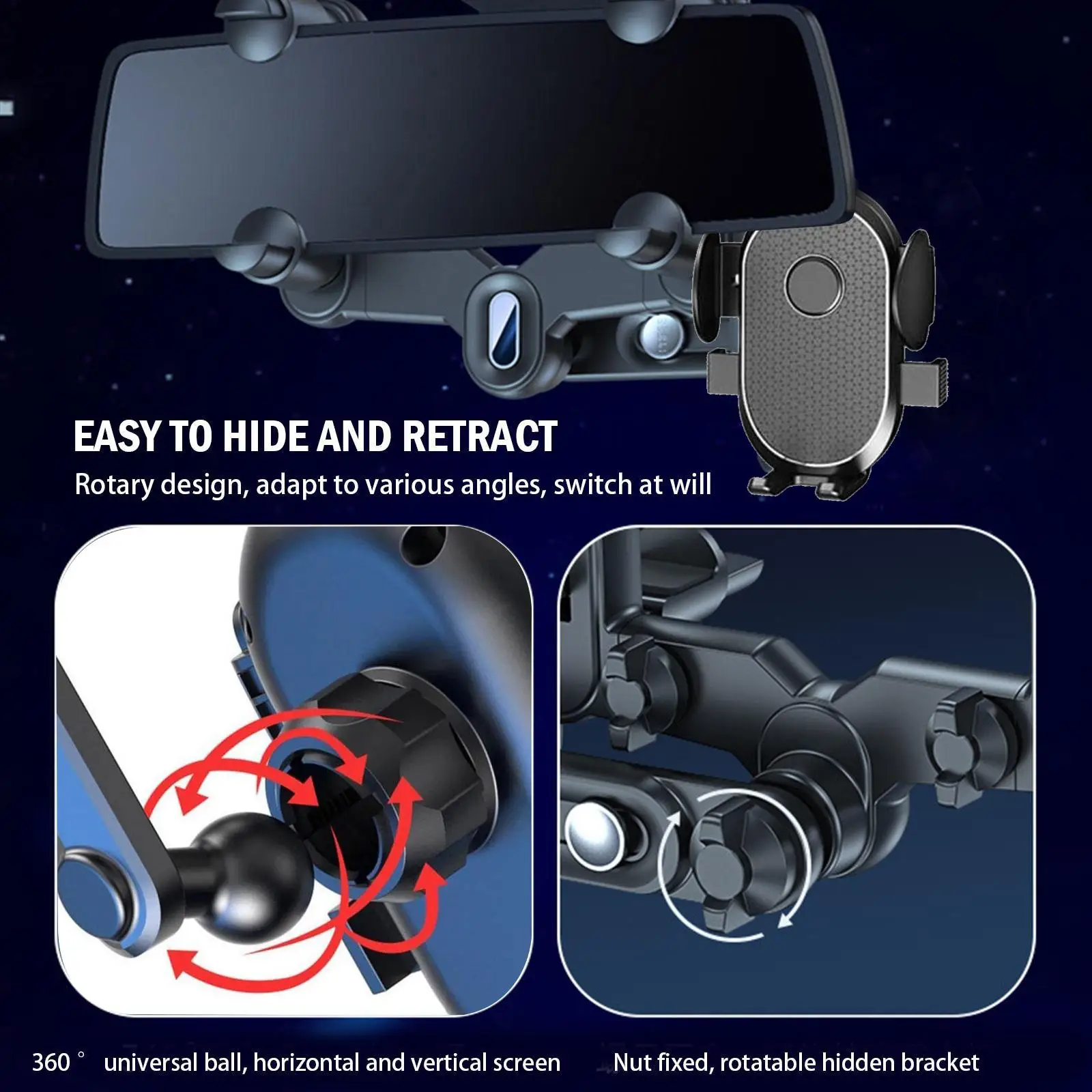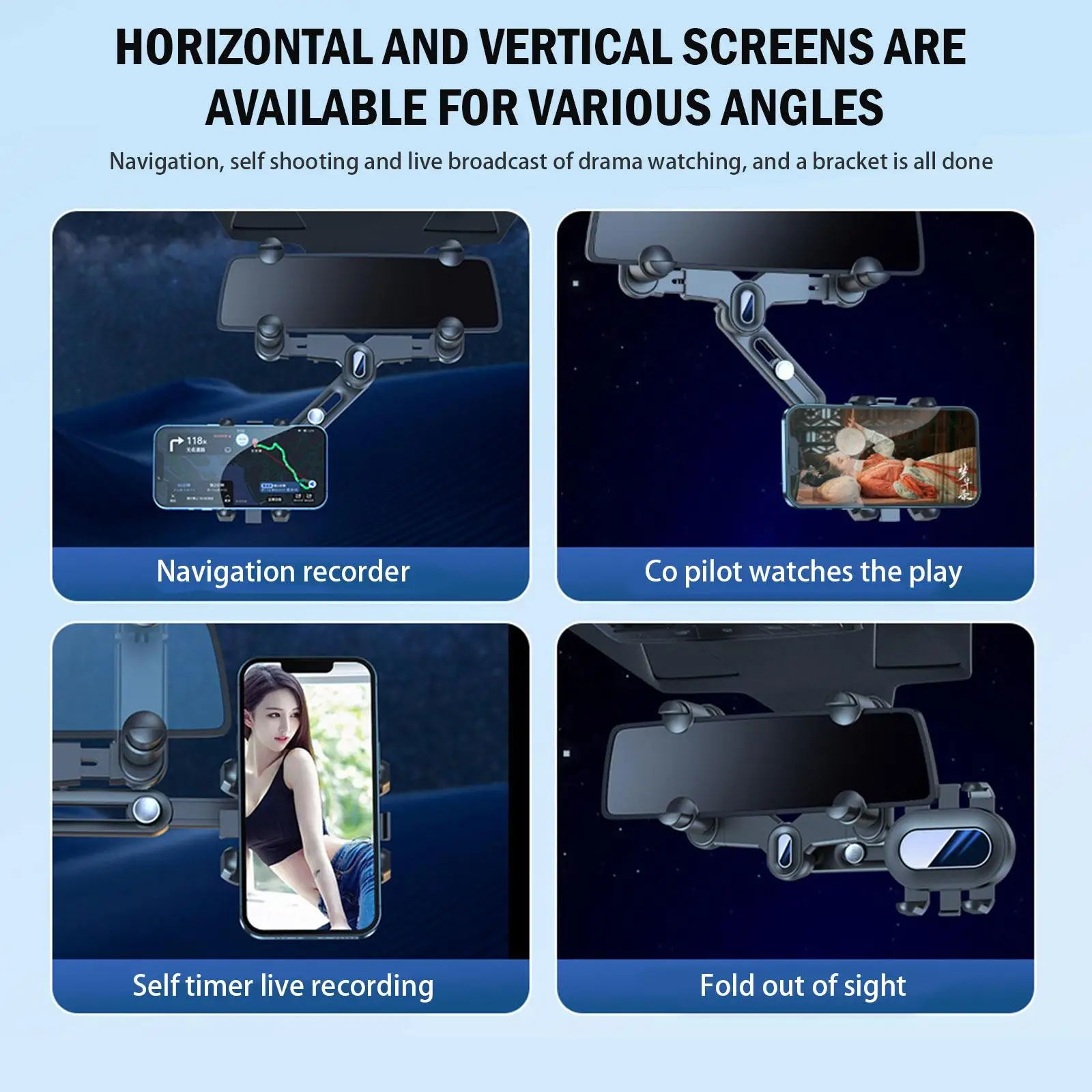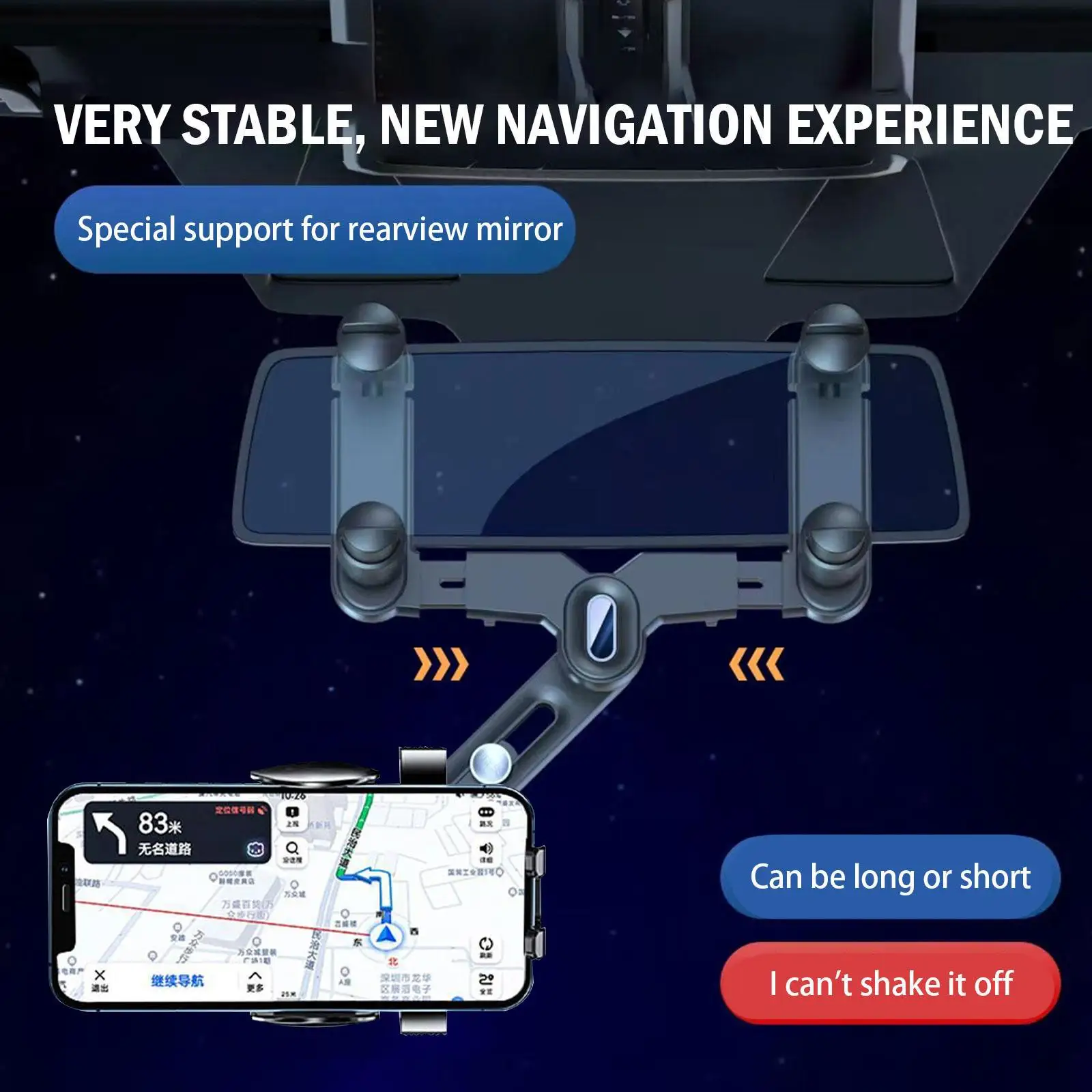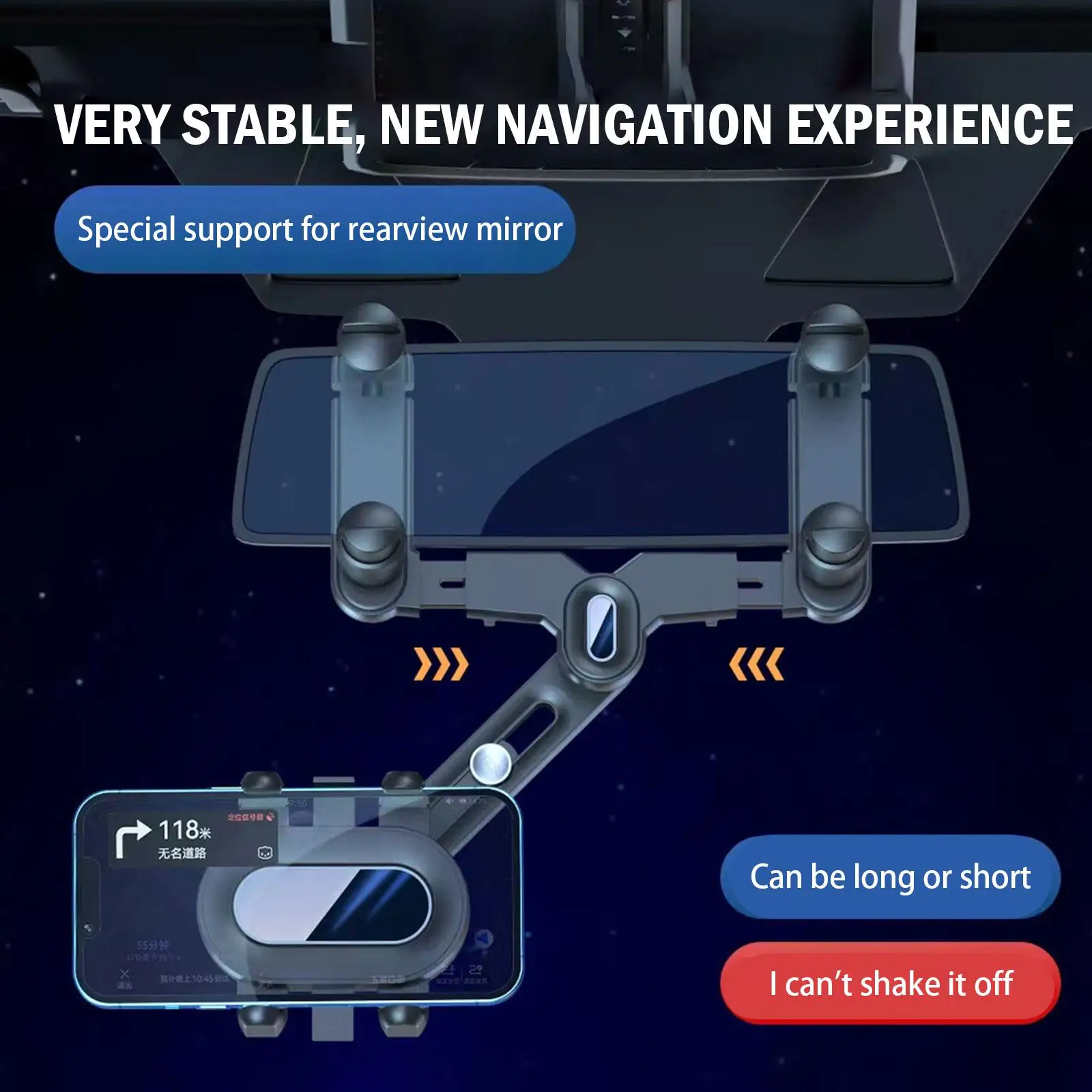Держатель телефона крепится на зеркало заднего вида автомобиля и может быть отрегулирован, чтобы держать глаза на дороге. Нет необходимости недооценить навигацию, получить более удобный и безопасный пользовательский опыт.