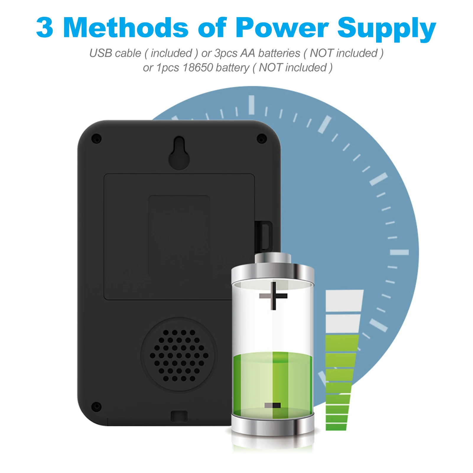 3 Power Supply Ways: 3Pcs AA batteries (not included) or 1pcs 18650 battery or DC 5V 1A input by USB cable, three power supply ways meet different requirements.