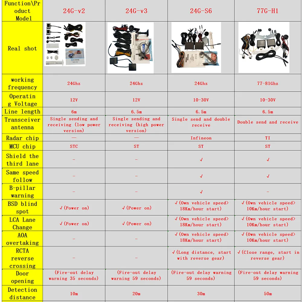 4. Door opening warning. When you open the door, if there are vehicles, pedestrians, and motorcycles behind you will be detected and an accurate warning will be given. 5. When waiting for the traffic light: the vehicle behind is a stationary object after it stops, and the blind area will not alarm. 6. During normal driving: When the speed of the car coming from behind is slower than us, there is no danger of collision, and no alarm will be issued;