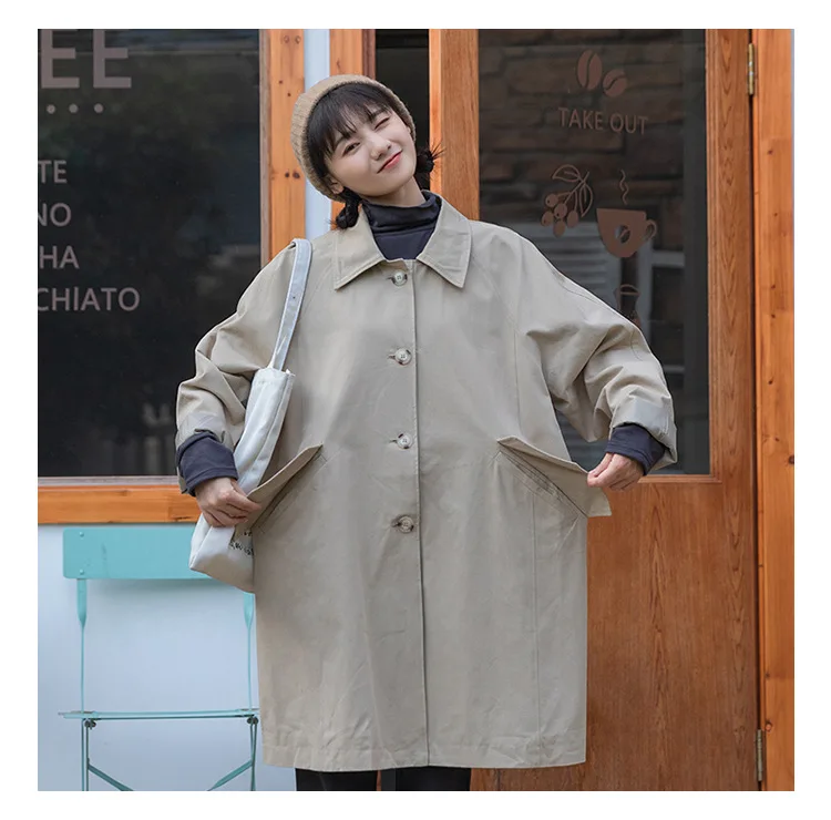 Женское осеннее пальто, однотонная женская ветровка, повседневный свободный женский длинный Тренч на пуговицах, Лоскутная Женская ветровка, 2021