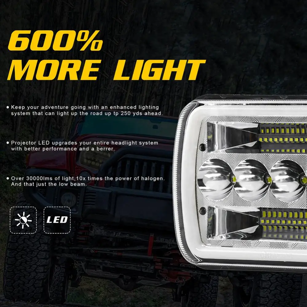 Отзывы о 5x7/7x6 дюймов 9 - 30 в 200 Вт квадратные фары с белым и янтарным DRL поворотный сигнал