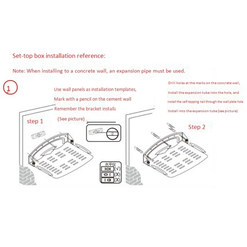 1.[Универсальный кронштейн]: кронштейн может держать цифровой приемник большого размера, портативный проектор, камеру, маршрутизатор длиной 300 мм/11,8 дюйма, ширина 220 мм/8,66 дюйма, вес 8,8 фунтов. И мы рекомендуем Вашему оборудованию длиной до 270 мм/10,6 дюйма и шириной