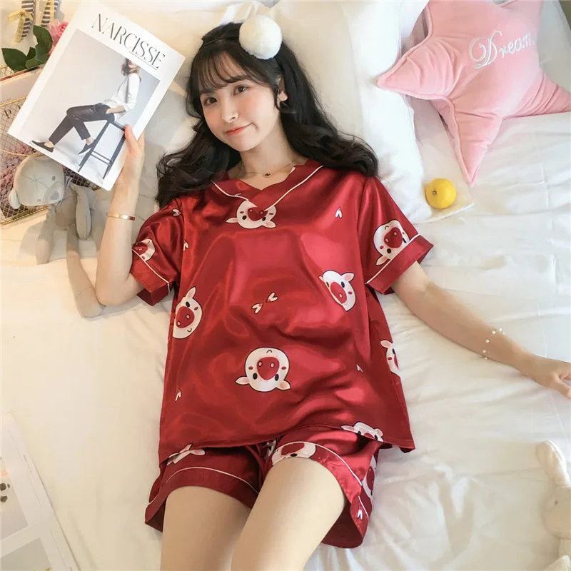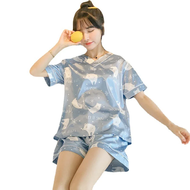 Отзывы о Пижама женская летняя тонкая из ледяного шелка с коротким рукавом костюм двух