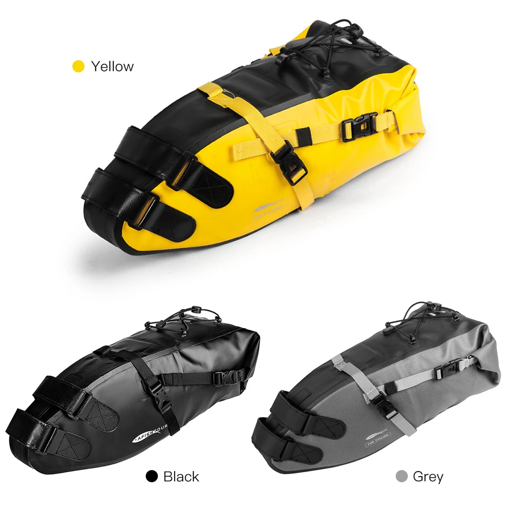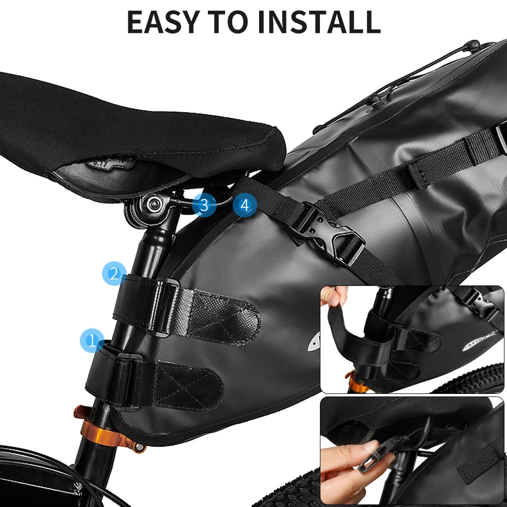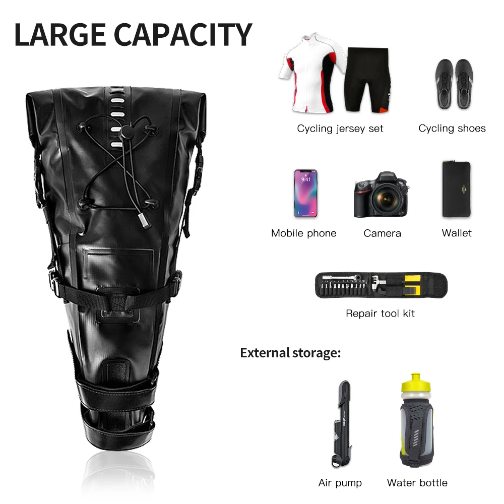 Этот мешок для велосипедного седла изготовлен из водонепроницаемого ПВХ материала и оснащен закрывающимся верхом, чтобы сохранить ваши предметы сухими. Легко устанавливается, отличный выбор для езды на велосипеде.