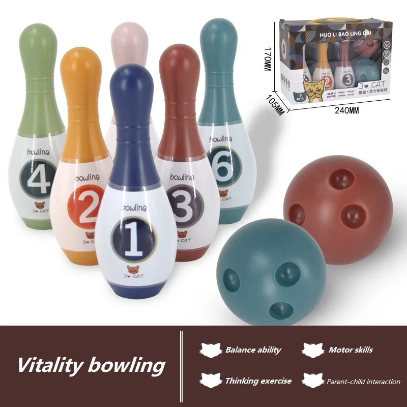 Название: мини-боулинг Размер: размер упаковки: 240х170мм одиночный шар для боулинга 145х55мм Материал: пластик введение продукта: глазами, чтобы прицелиться в направлении, мозги заботятся о направлении и силе удара, чтобы развивать координацию рук детей, глаз и мозга. Шар для боулинга гладкий и свободный от заусенцев в целом, который заботится о маленьких руках ребенка. Три небольших отверстия для удара мяча разработаны в соответствии с маленькой рукой ребенка, которую легко взять.