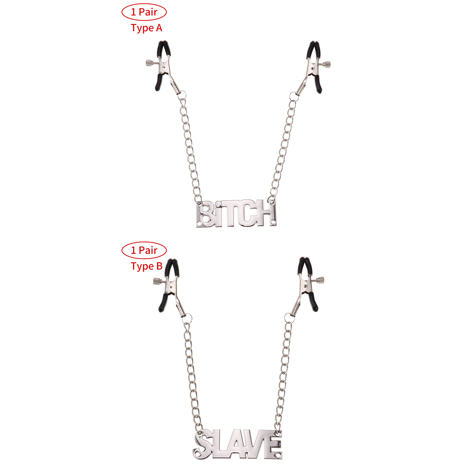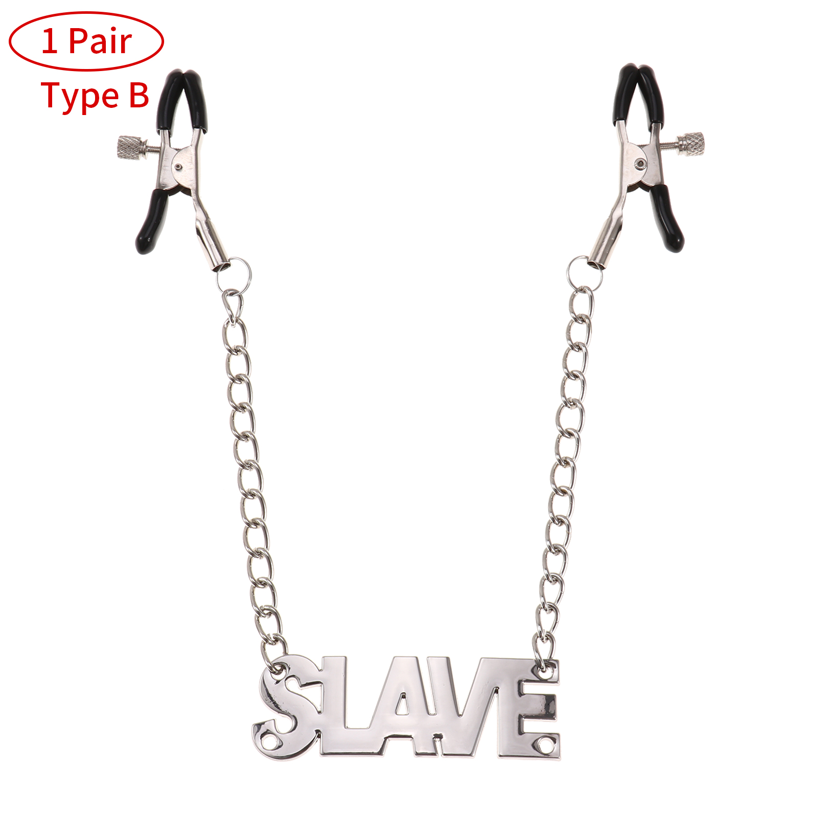 1 пара женских зажимов для сосков, регулируемый винт с подвеской в виде буквы и металлической цепочкой.