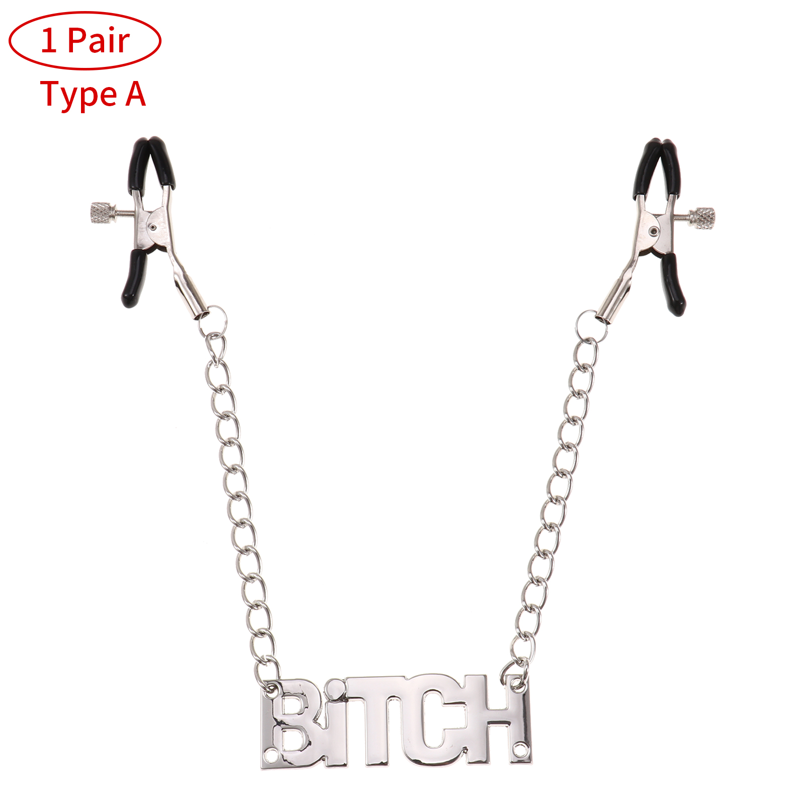 Эластичные зажимы для сосков с винтовым дизайном, мягкая резиновая крышка, проста в использовании. И металлическая цепочка с подвеской в виде буквы.