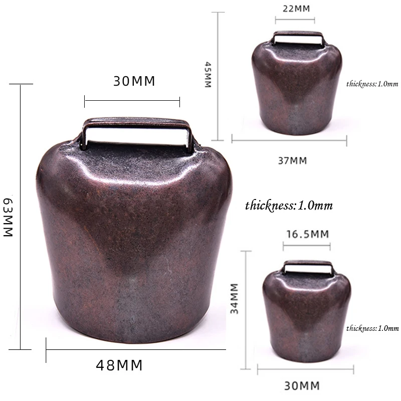 Характеристики: прочный железный материал, звук и четкость, используется для 7-9 лет. Категория продукта: колокольчик коровы Цвет: Бронзовый, медный красный, золотой, серебряный Материал: железо Размер: S: 34x30 мм (1,33*1,18 дюймов); M:45x37 мм (1,77*1,45 дюймов); L:63x48 мм (2,48*1,88 дюйма) Посылка включает в себя: металлический колокол для коров, колокол для овец x 1