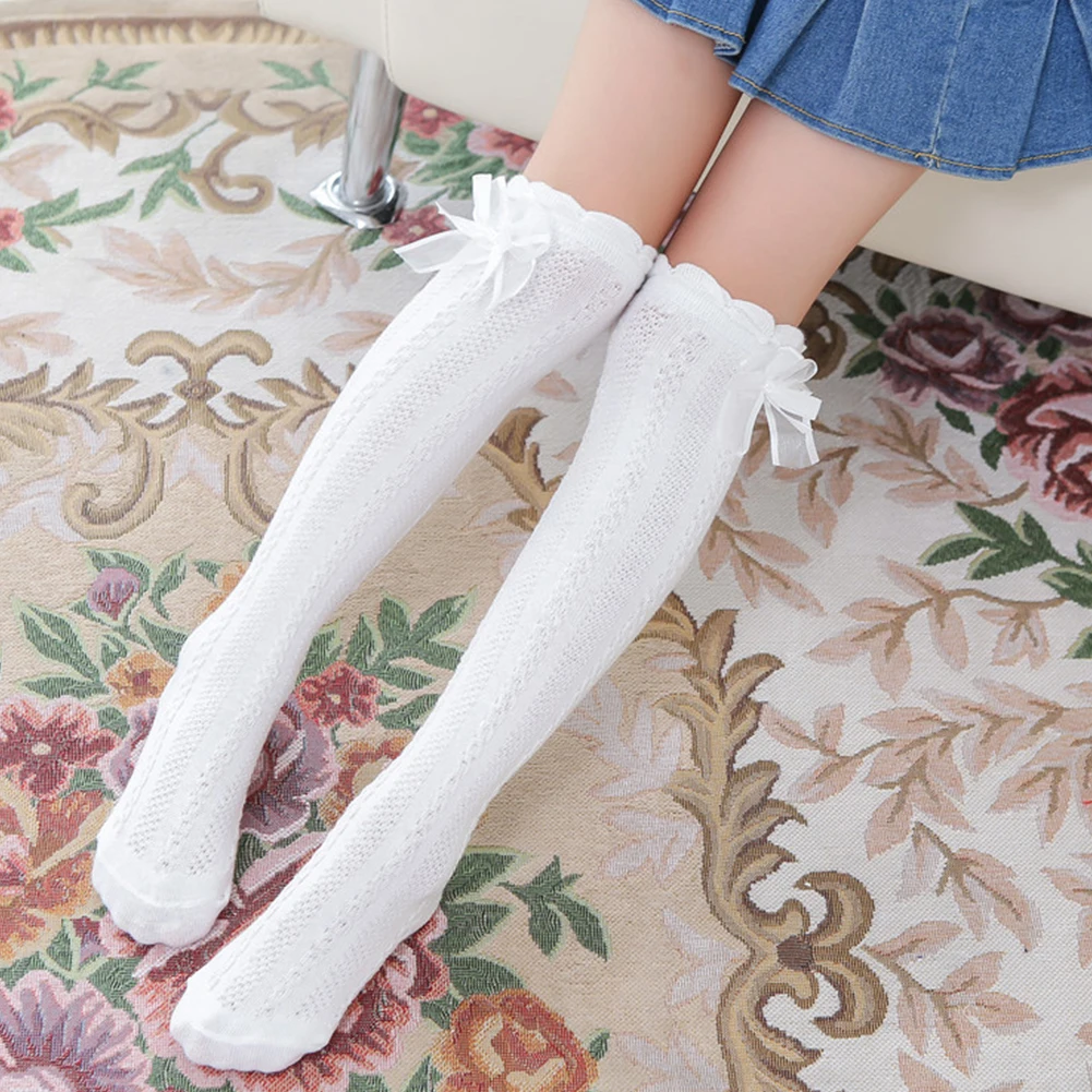 8 шт., гольфы для девочек хлопок, милые колготки выше колена с бантом детские школьные чулки под платье подарки для детей
