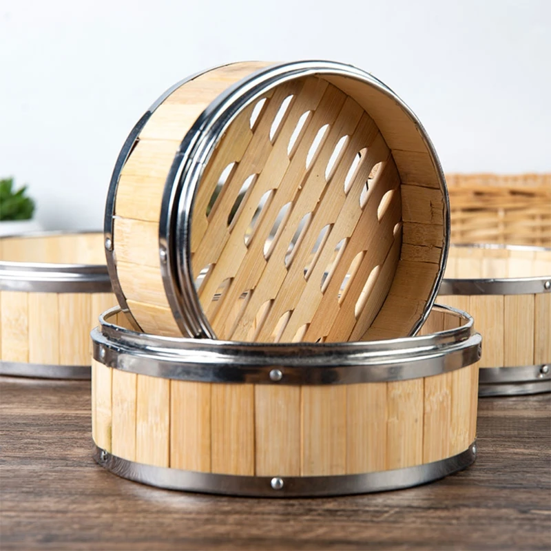 1 шт., бамбуковый отпариватель для еды из нержавеющей стали, без крышки, корзина для парения, пельменей, десерт, тусклая клетка, кухонный гаджет