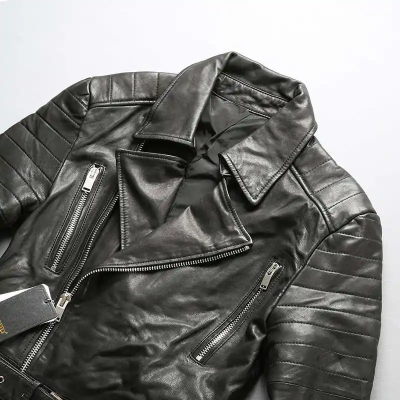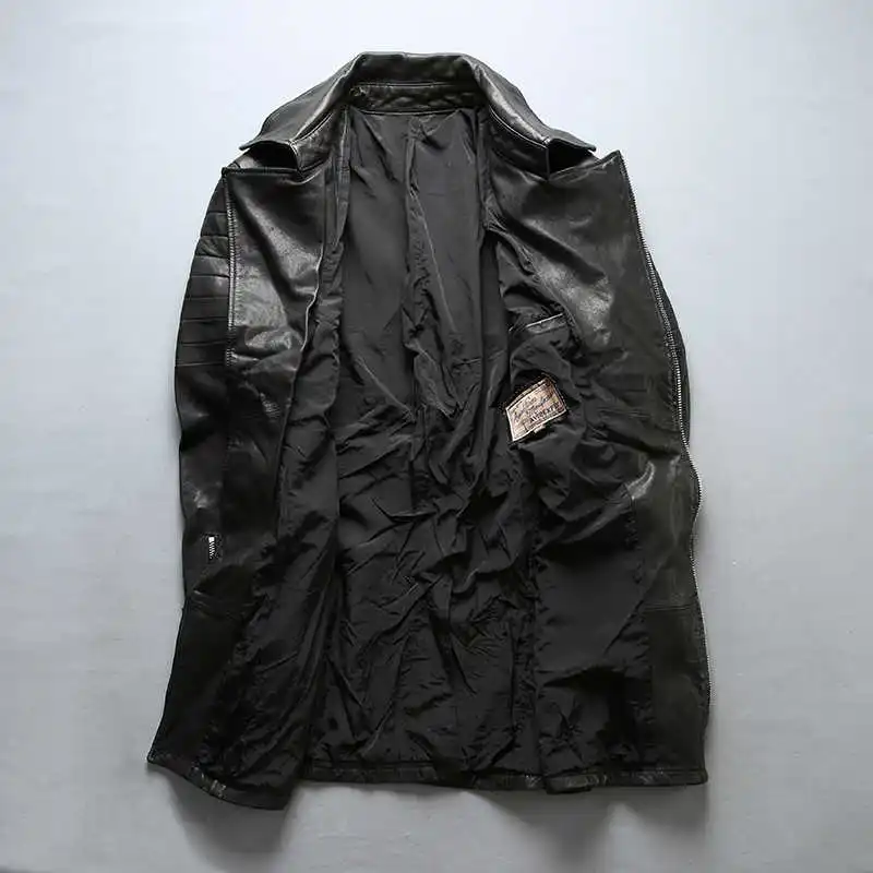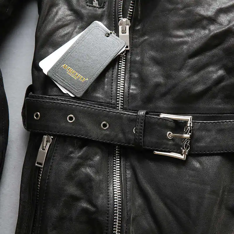 Новинка, Мужская черная мотоциклетная кожаная куртка AVIREXFLY, модные длинные стильные куртки из натуральной овчины с диагональной застежкой-молнией