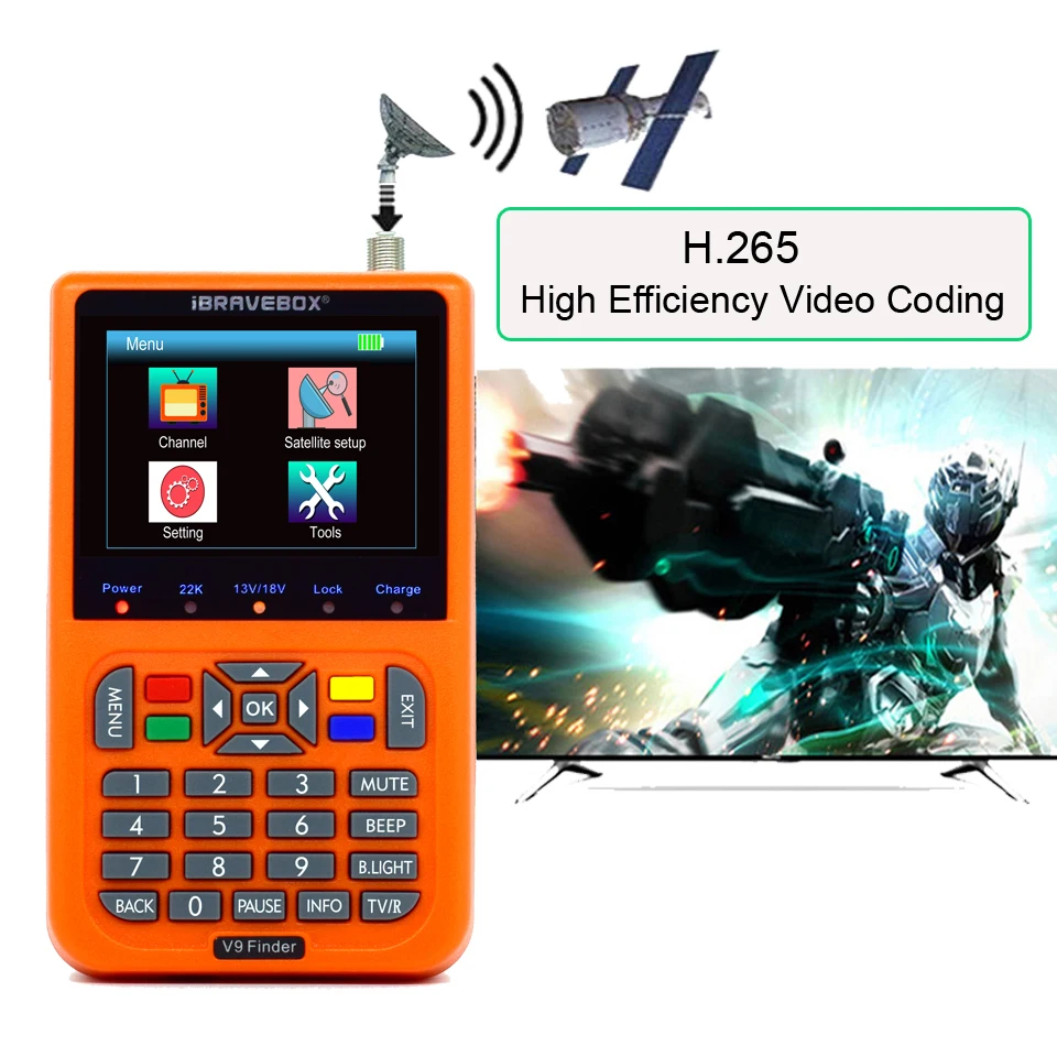 IBRAVEBOX V9 Finder HD спутниковый искатель DVB S2 Цифровой H.265 Full 1080P Встроенный аккумулятор 3000 мАч FTA 3,5 "ЖК-дисплей Sat Finder Meter