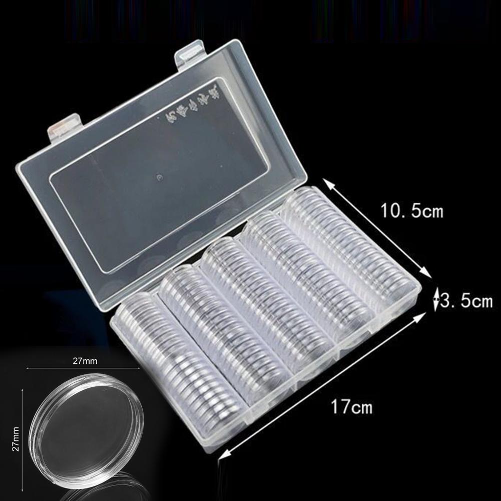 100 шт./компл. 27 мм коллекционные коробки для монет Защитные Акриловые пыленепроницаемые капсулы для хранения круглые защитные Органайзеры для церемонии награждения