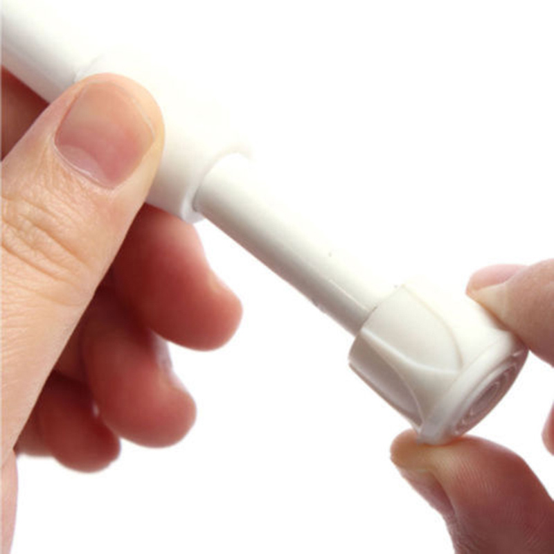 Новая штанга для штор телескопическая Растяжимая Высокоуглеродистая сталь выдвижная для ванной комнаты Описание: Особенности:Материал: железо + пластик