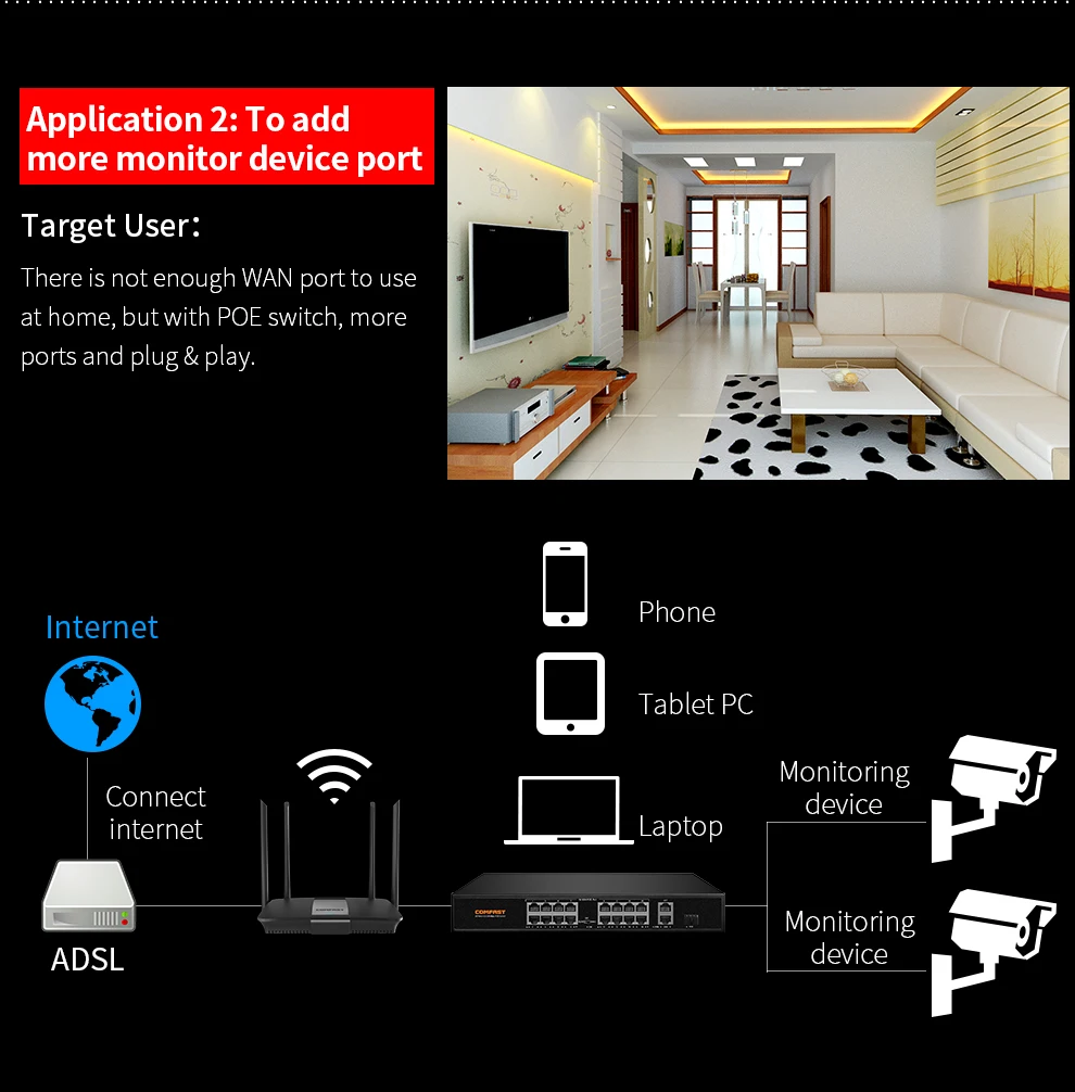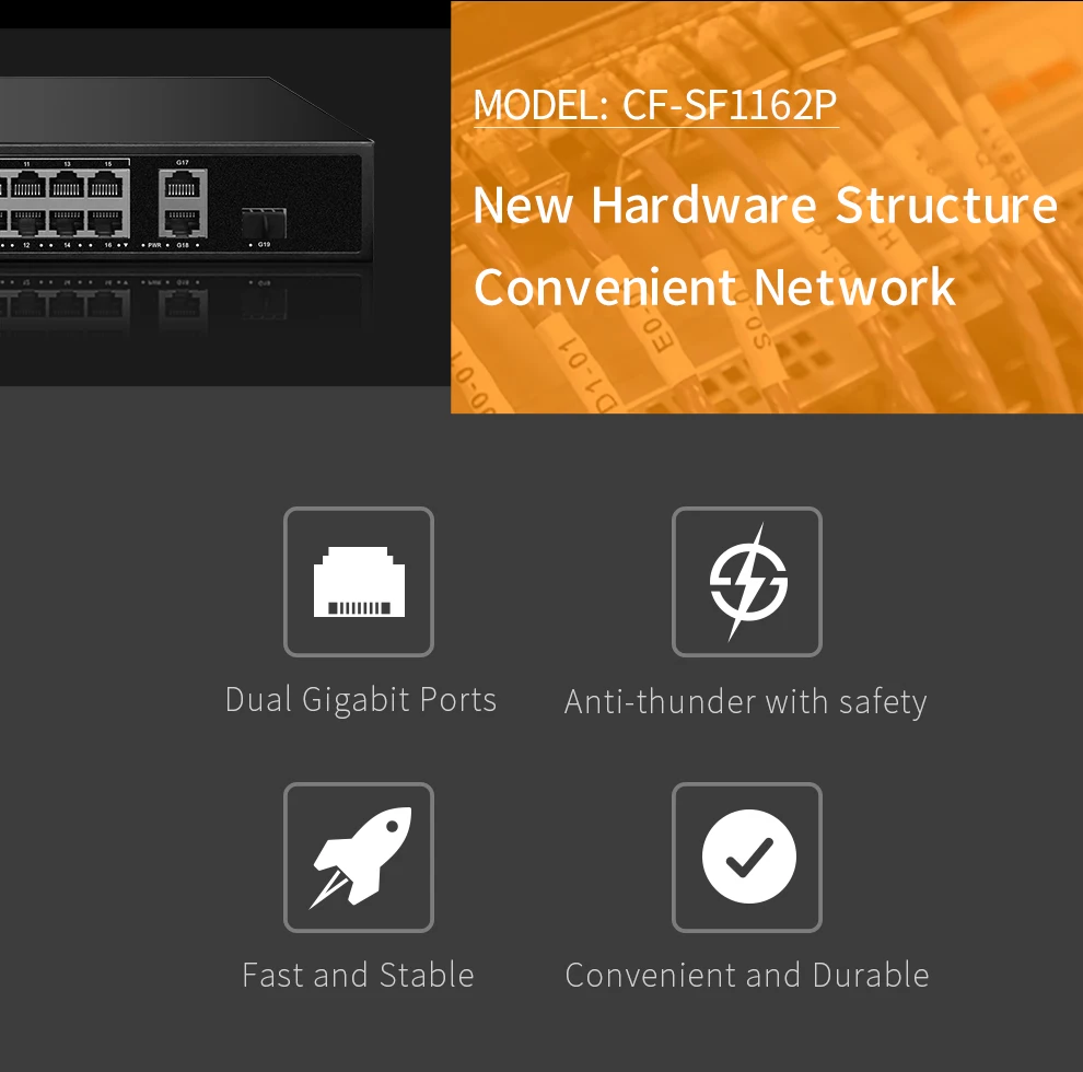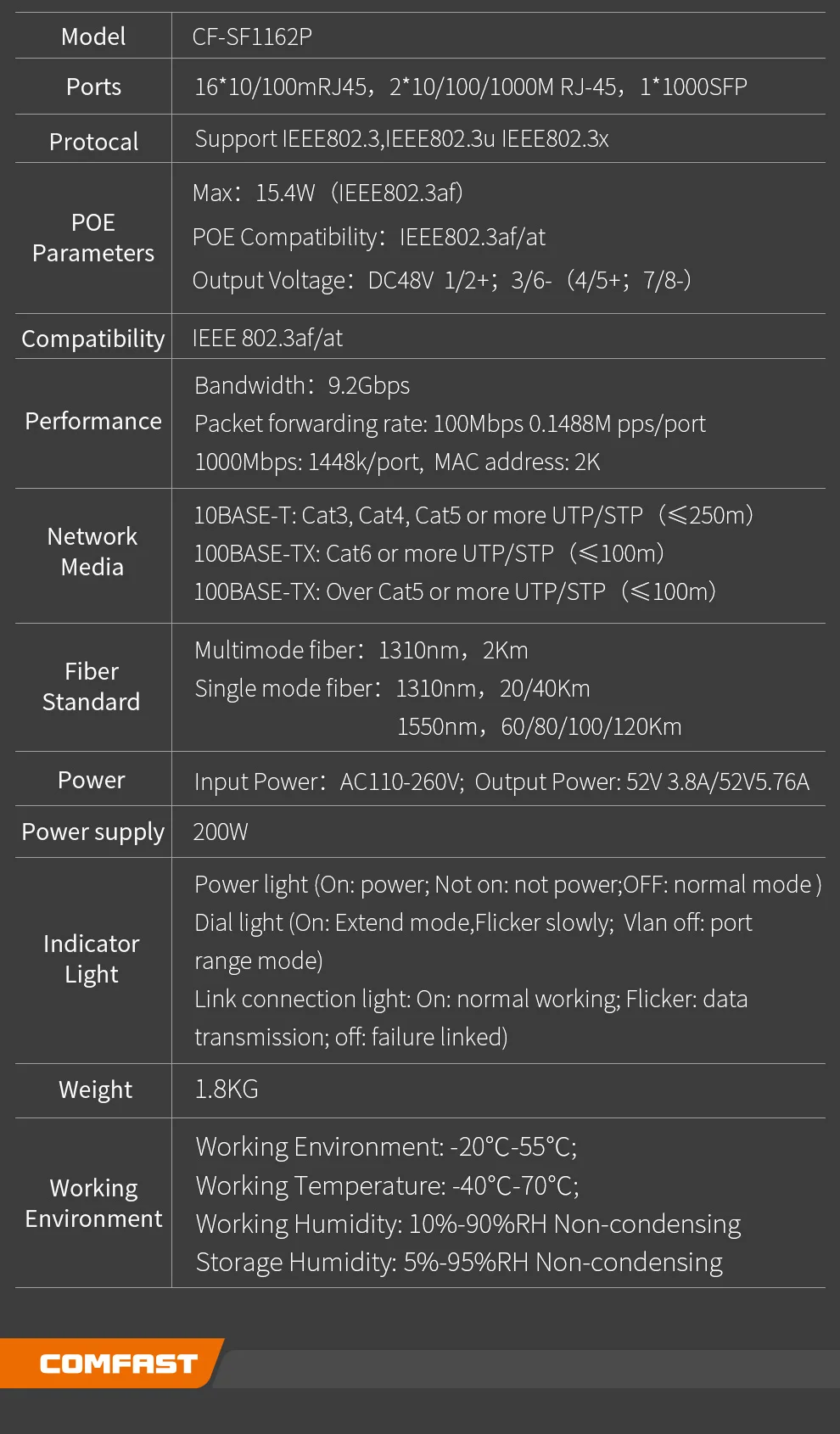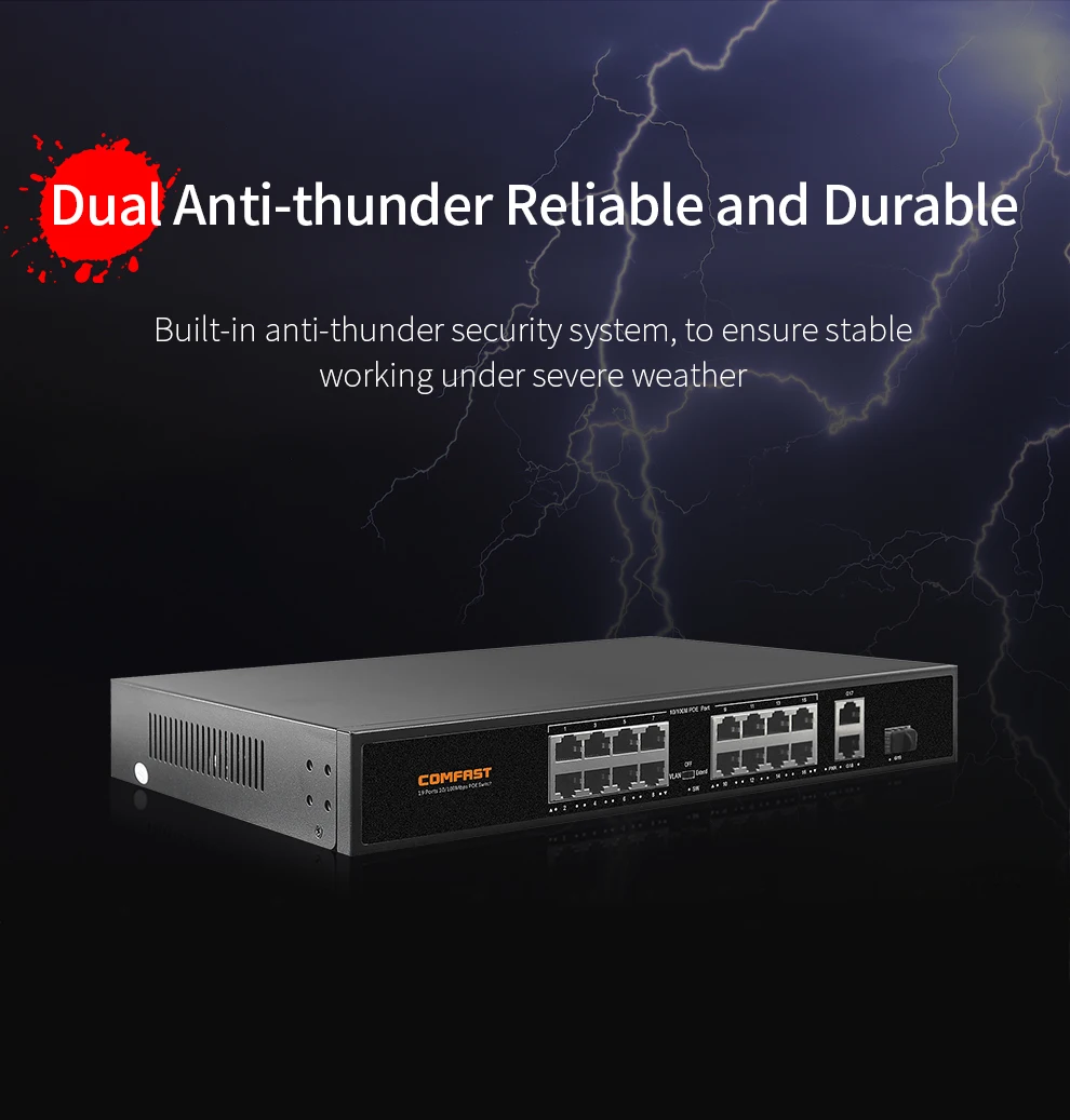 Отзывы о Comfast смарт-самоадаптирующийся POE переключатель диагональ 16*10/100 м rj45 + 2*10/100/1000 prots