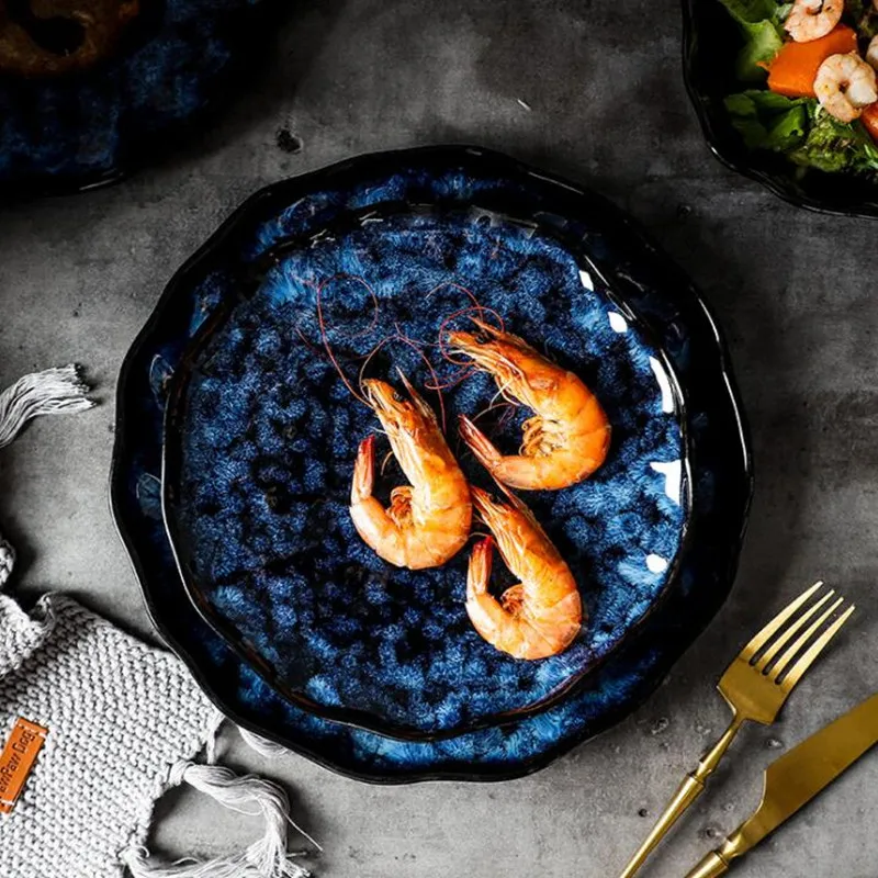 Отзывы о Синие керамические блюда западные обеденные тарелки посуда для стейка
