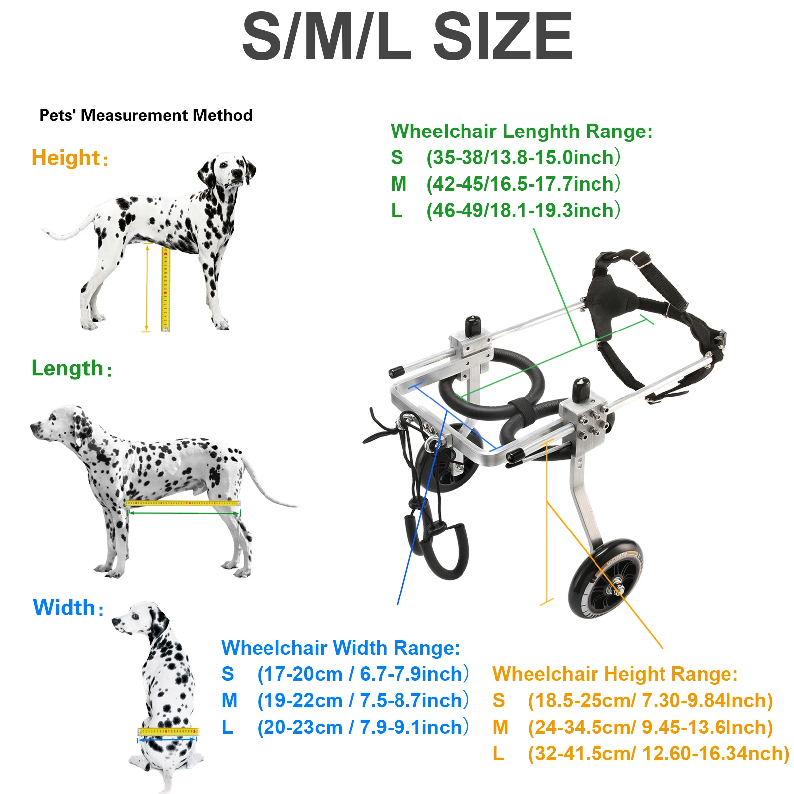 1.S РазмерКресло-коляска Ширина диапазон: (17-20 см/6,7-7,9 дюймов)Кресло-коляска используемый размерный ряд (18,5-25 см/7,30-9,84 дюймов)Длина инвалидной коляски (35-38/13, 8-15,0 дюйма) 2.M SZIEКресло-коляска Ширина диапазон: (19-22 см/7,5-8,7 дюймов)Диапазон высоты инвалидной коляски (24-34,5 см/9,45-13,6 дюйма)Длина инвалидной коляски (42-45/16.5-17,7 дюйма) 3. Размер LКресло-коляска Ширина диапазон: (20-23 см/7,9-9,1 дюймов)Диапазон высоты инвалидной коляски (32-41,5 см/12,60-16.34nch)Длина инвалидной коляски (46-49/18.1-19,3 дюйма)