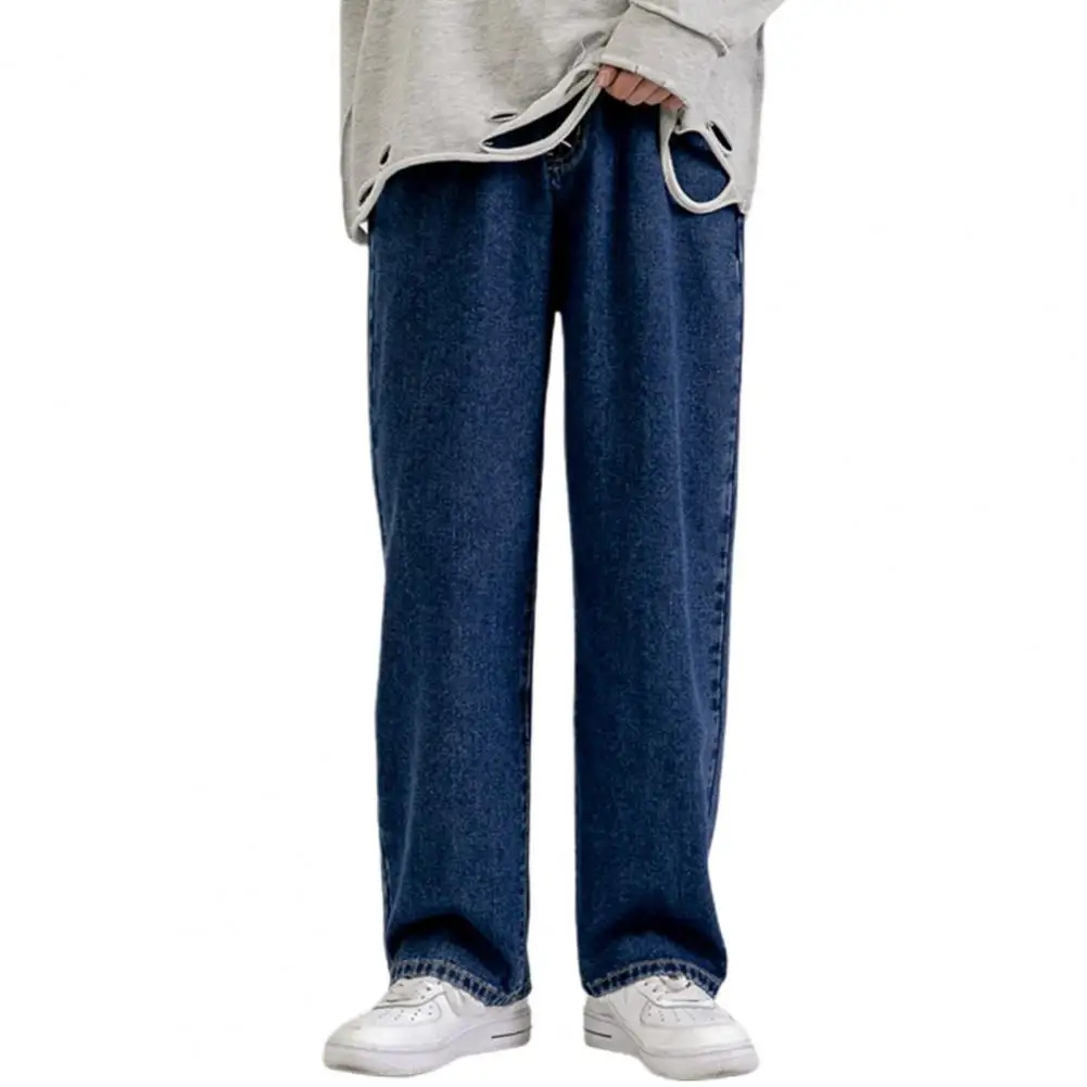 Прямые мужские джинсы со средней посадкой, широкие однотонные джинсы в стиле хип-хоп, уличная одежда
